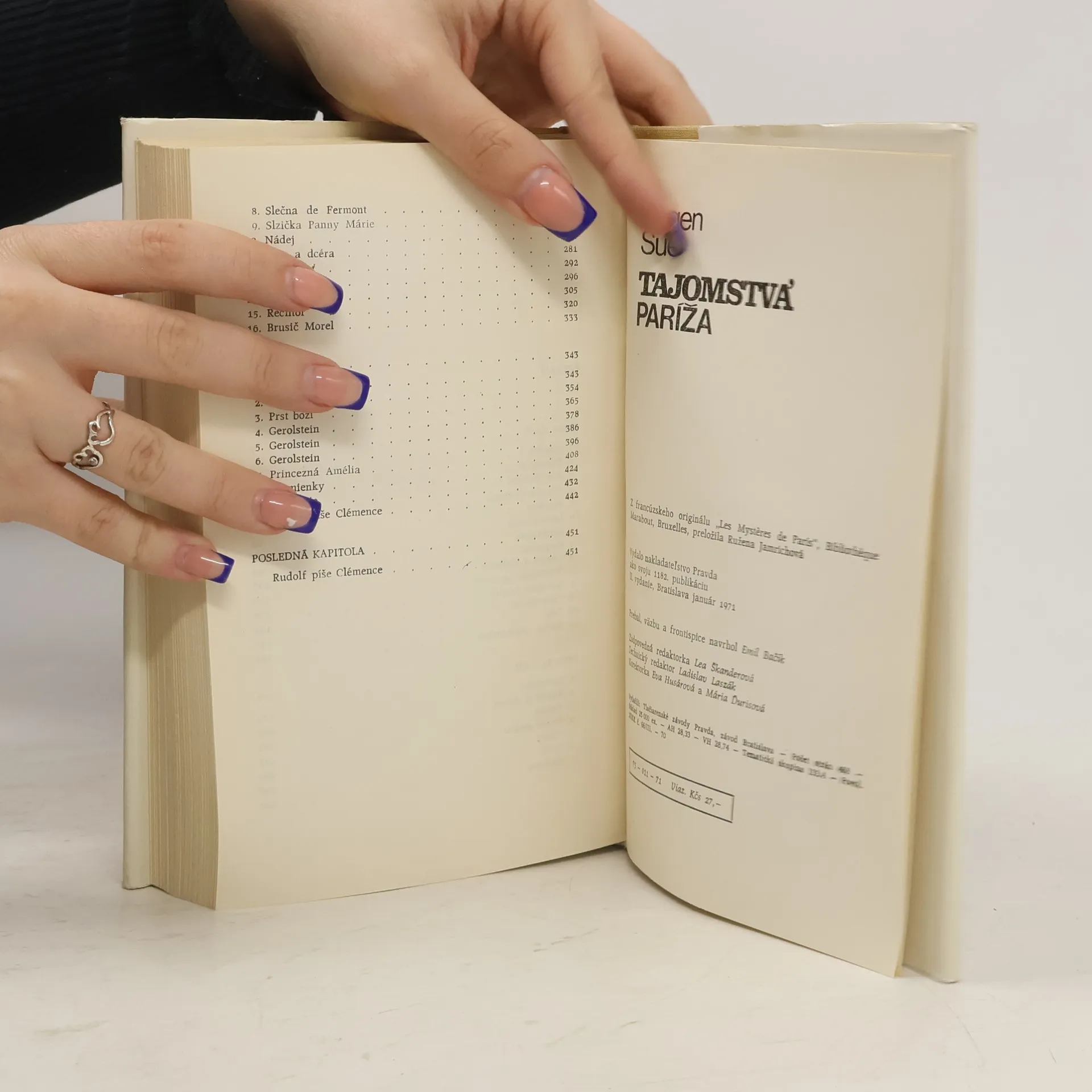 Rozsiahly historický román v troch zväzkoch. Stanete sa svedkom príbehov celej škály postáv z najrôznejších prostredí a z najrôznejších spoločenských vrstiev Paríža. Popri ústrednej postave Slzičke - dcére kniežaťa Rudolfa, vyrastajúcej v najväčšom bahne veľkomesta autor rozpráva aj mnoho iných dramatických príbehov. Zavedie čitateľa do väzníc, priblíži súdne praktiky tých čias, zamýšľa sa nad človekom, či sa rodí zlý, alebo sa takým stáva vplyvom prostredia