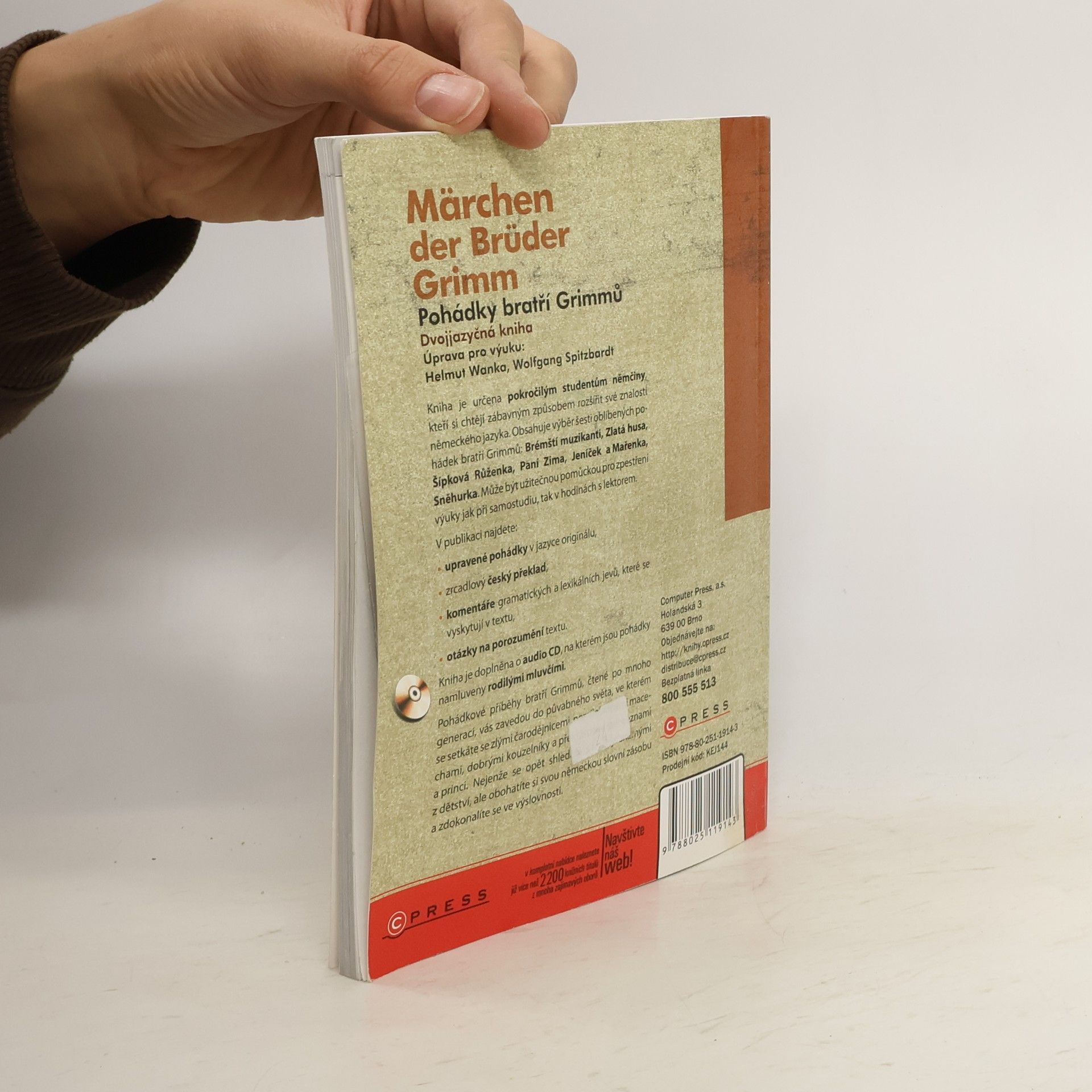 Kniha je určena pokročilým studentům němčiny, kteří si chtějí zábavným způsobem rozšířit své znalosti německého jazyka. Obsahuje výběr šesti oblíbených pohádek bratří Grimmů: Brémští muzikanti, Zlatá husa, Šípková Růženka, Paní Zima, Jeníček a Mařenka, Sněhurka. Může být užitečnou pomůckou pro zpestření výuky jak při samostudiu, tak v hodinách s lektorem.