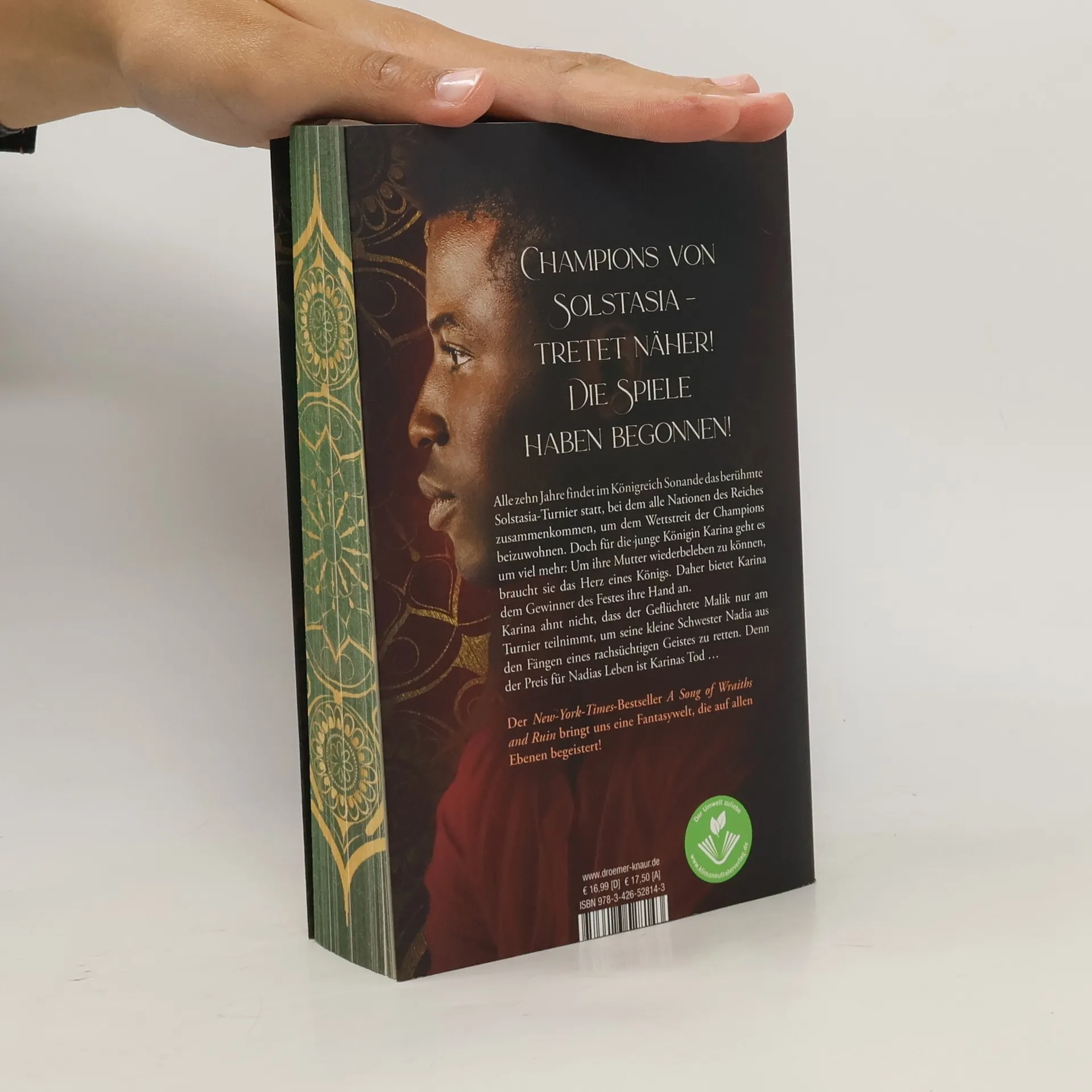Sie braucht sein Herz für ein magisches Ritual – er ihren Tod für das Leben seiner Schwester: Der New-York-Times-Bestseller »A Song Of Wraiths And Ruin« von der aus Ghana stammenden Autorin Roseanne A. Brown führt uns in eine westafrikanisch inspirierte Fantasywelt, die auf allen Ebenen begeistert: mythisch, romantisch und modern! Veredelt mit exklusivem farbigen Buchschnitt! Alle fünfzig Jahre findet im Königreich Sonande das berühmte Solstasia-Turnier statt, bei dem alle Nationen des Reiches zusammenkommen, um dem Wettstreit der Champions beizuwohnen. Doch für die junge Königin Karina geht es um viel mehr: Um ihre Mutter wiederbeleben zu können, braucht sie das Herz eines Königs. Daher bietet Karina dem Gewinner des Festes ihre Hand an… Zur gleichen Zeit kommt Malik mit seinen beiden Schwestern in die Hauptstadt Ziran, voller Hoffnung auf ein neues Leben fern von Krieg und Gewalt. Malik freut sich auf die Festlichkeiten rund um Solstasia – bis ein rachsüchtiger Geist seine kleine Schwester Nadia entführt und einen furchtbaren Preis für ihr Leben verlangt: den Tod von Königin Karina. Für Malik gibt es nur eine Chance, Karina nahe genug zu kommen, um sie zu töten: Er muss das Solstasia-Turnier gewinnen … Der Auftakt einer spannenden, von westafrikanischer Folklore inspirierten Fantasy-Dilogie, in der eine trauernde Kronprinzessin und ein verzweifelter Geflüchteter ihre Ziele nur erreichen können, indem sie einander töten. Dieser New-York-Times-Bestseller ist perfekt für Fans von Tomi Adeyemi, Renée Ahdieh und Sabaa Tahir. »Ein explosives, atemberaubendes Fantasy-Debüt […] Vor allem aber nutzt Brown eine üppige Fantasy-Kulisse, um auf ergreifende Weise Probleme der realen Welt zu diskutieren.« Booklist »Eine actiongeladene Geschichte über Ungerechtigkeit, Magie und Romantik, die den Leser in eine spannende Welt eintauchen lässt, die ›Children of Blood and Bones‹ in nichts nachsteht.« Publishers Weekly, Eine antirassistische Kinder- und Jugendbuch-Leseliste