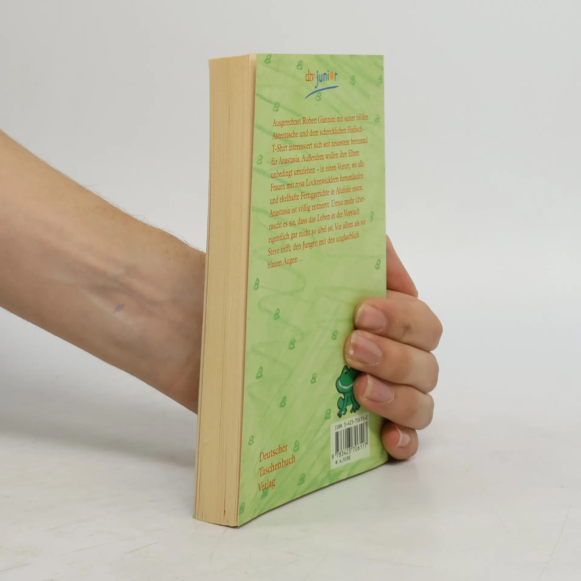 Ausgerechnet Robert Giannini mit seiner blöden Aktentasche und dem schrecklichen Haifisch-T-Shirt interessiert sich seit neuestem brennend für Anastasia. Außerdem wollen ihre Eltern unbedingt umziehen - in einen Vorort, wo alle Frauen mit rosa Lockenwicklern herumlaufen und ekelhafte Fertiggerichte in Alufolie essen. Anastasia ist völlig entnervt. Umso mehr überrascht es sie, dass das Leben in der Vorstadt eigentlich gar nicht so übel ist. Vor allem als sie Steve trifft, den Jungen mit den unglaublich blauen Augen.