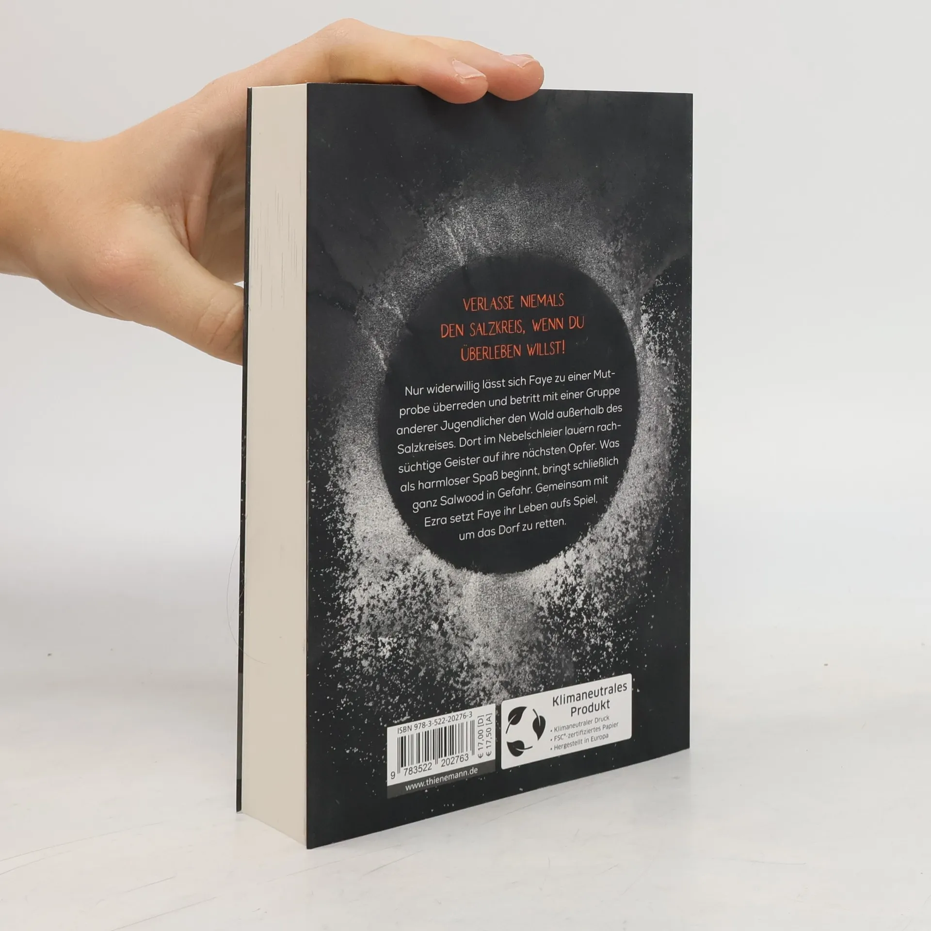 Ein abgelegenes Dorf, ein Bannkreis aus Salz, Geister, die auf verlorene Seelen lauern: Dieser packende Mysterythriller mit mitreißender Liebesgeschichte garantiert Lesegenuss pur! Verlasse niemals den Salzkreis, wenn du überleben willst! Nur widerwillig lässt sich Faye zu einer Mutprobe überreden und betritt mit einer Gruppe anderer Jugendlicher den Wald außerhalb des Salzkreises. Dort im Nebelschleier lauern rachsüchtige Geister auf ihre nächsten Opfer. Was als harmloser Spaß beginnt, bringt schließlich ganz Salwood in Gefahr. Gemeinsam mit Ezra setzt Faye ihr Leben aufs Spiel, um das Dorf zu retten.