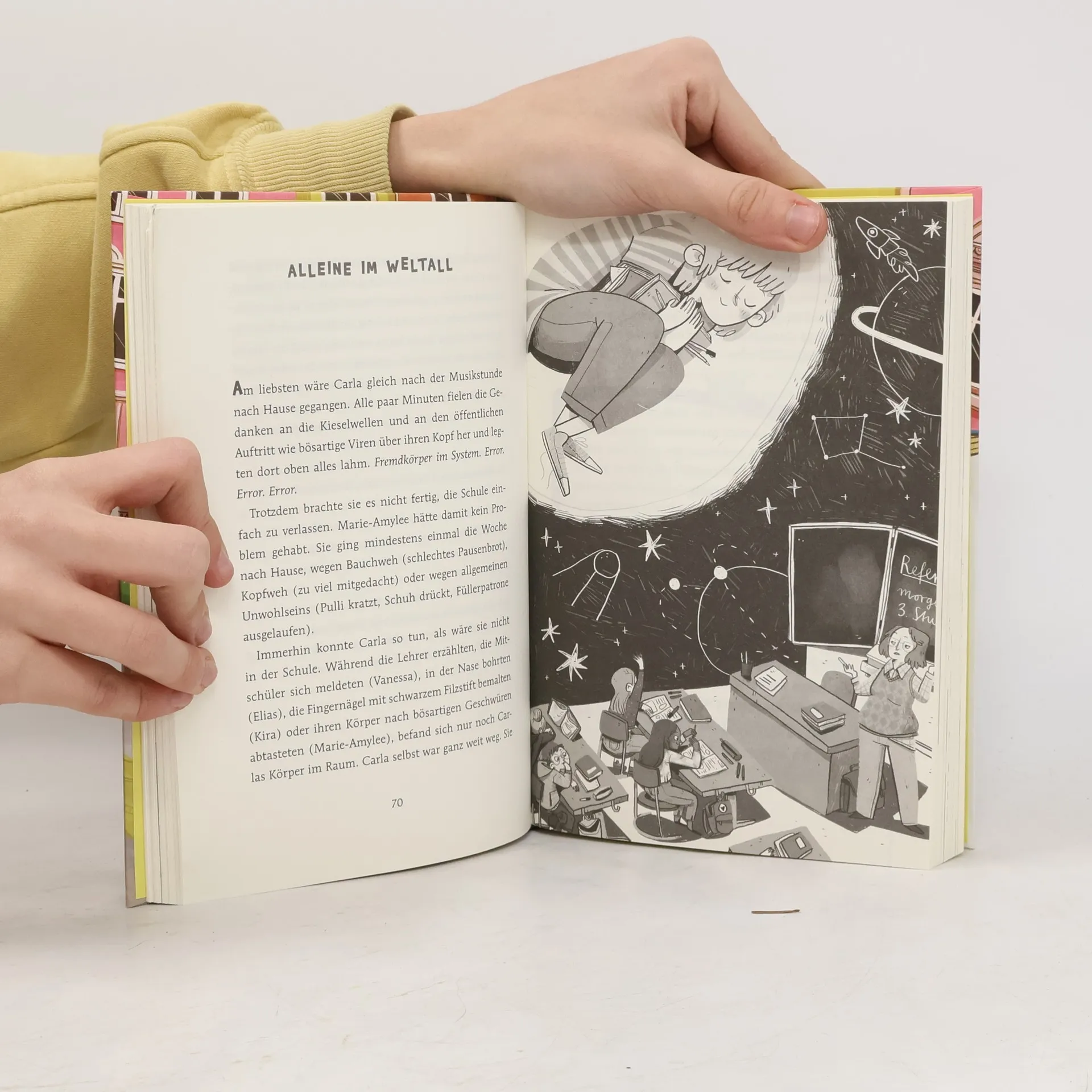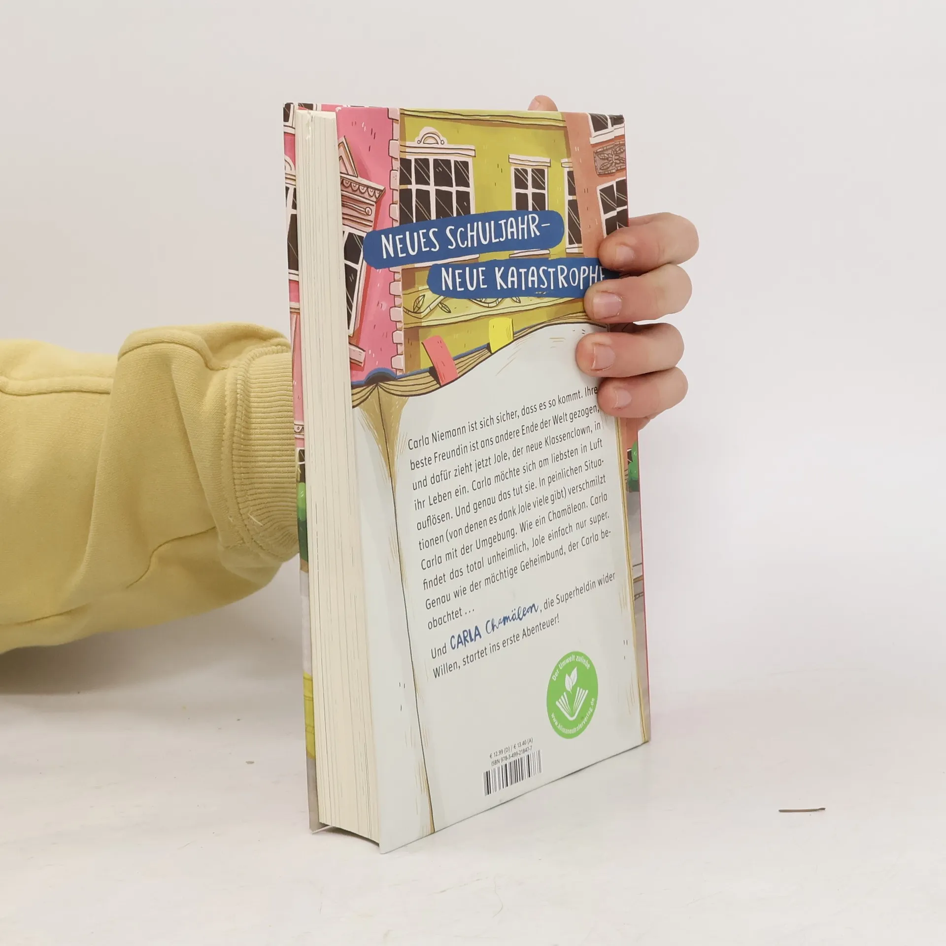 Neues Schuljahr – Neue Katastrophe Carla Niemann ist sich sicher, dass es so kommt. Ihre beste Freundin ist ans andere Ende der Welt gezogen, und dafür zieht jetzt Jole, der neue Klassenclown, in ihr Leben ein. Carla möchte sich am liebsten in Luft auflösen. Und genau das tut sie. In peinlichen Situationen (von denen es dank Jole viele gibt) verschmilzt Carla mit der Umgebung. Wie ein Chamäleon. Carla findet das total unheimlich, Jole einfach nur super. Genau wie der mächtige Geheimbund, der Carla beobachtet … Und Carla Chamäleon, die Superheldin wider Willen, startet ins erste Abenteuer!