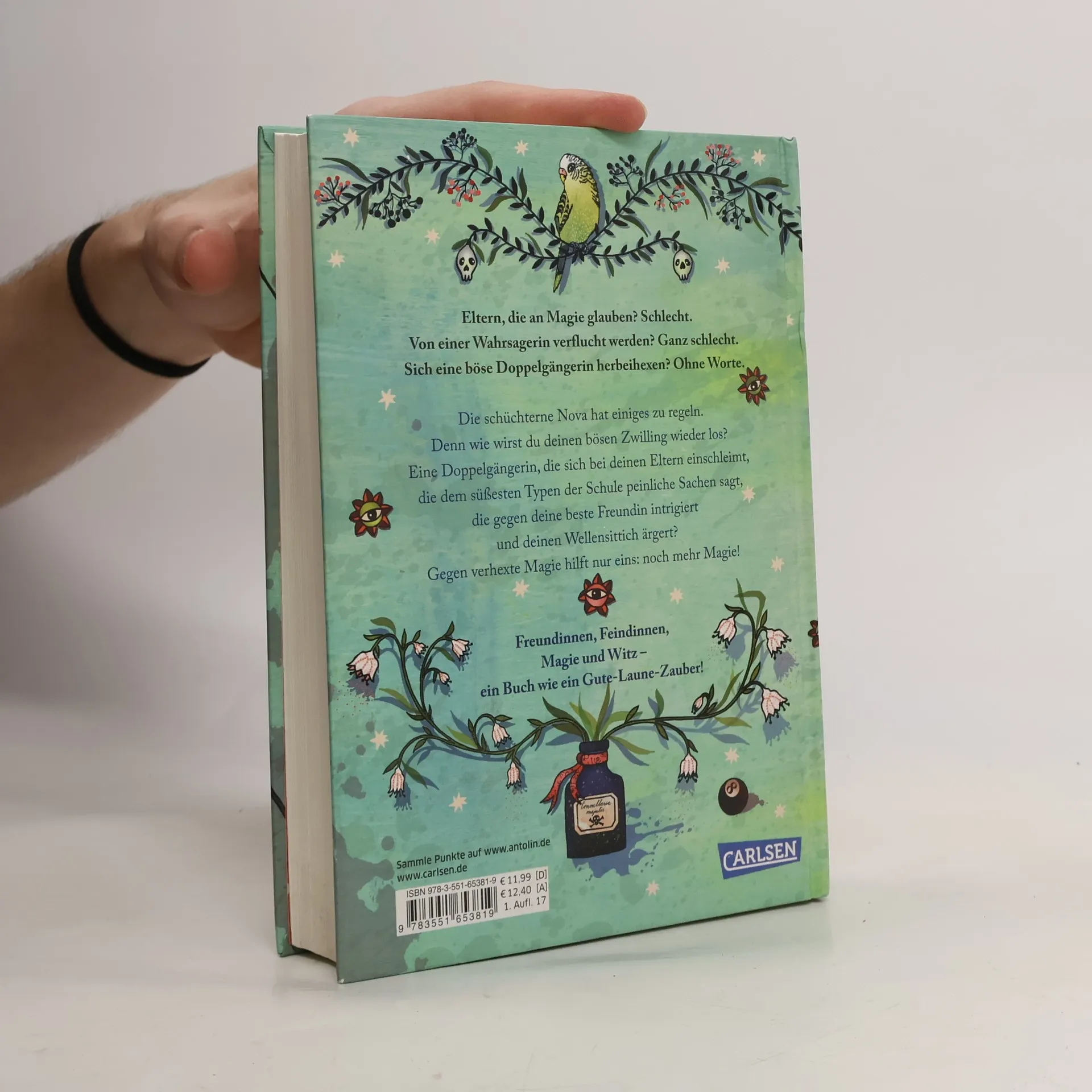 Hier ist NOVA: unscheinbar, schüchtern, tollpatschig. Dort ist ein böser Fluch. Und auf einmal gibt es AVON: intrigant, zuckersüß und verflucht gefährlich ... Nova ist sprachlos. Sie glaubt nicht an Magie. Doch seit sie auf dem Jahrmarkt von einer Wahrsagerin verhext wurde, ist da plötzlich diese Doppelgängerin: Avon. Eine hinterhältige Nova-Kopie, die sich bei Novas Eltern einschleimt, die dem süßesten Typen der Schule peinliche Sachen sagt und Novas Wellensittich ärgert. Schnell wird klar: Nova muss ihren bösen Zwilling wieder loswerden. Sie muss mutig sein und über ihren Schatten springen. Vor allem aber braucht sie eine gute Freundin – am besten mit magischen Fähigkeiten. Denn gegen so viel schwarze Magie hilft nur eines: noch mehr Magie ... Textauszug: „Mein Name ist Avon“, sagte die Doppelgängerin. Sie hob spöttisch den Kopf, als wolle sie auf Nova herabsehen, dabei waren sie beide exakt gleich groß. „Ich bin du – nur besser. Eine bessere Version von Nova Stark." *** Freundinnen, Feindinnen, Magie und Witz – ein Buch wie ein Gute-Laune-Zauber! *** Mädchenbuch mit Fantasy, Magie und jeder Menge Spaß! Das Hardcover-Debüt der jungen Autorin und Bloggerin Tanja Voosen