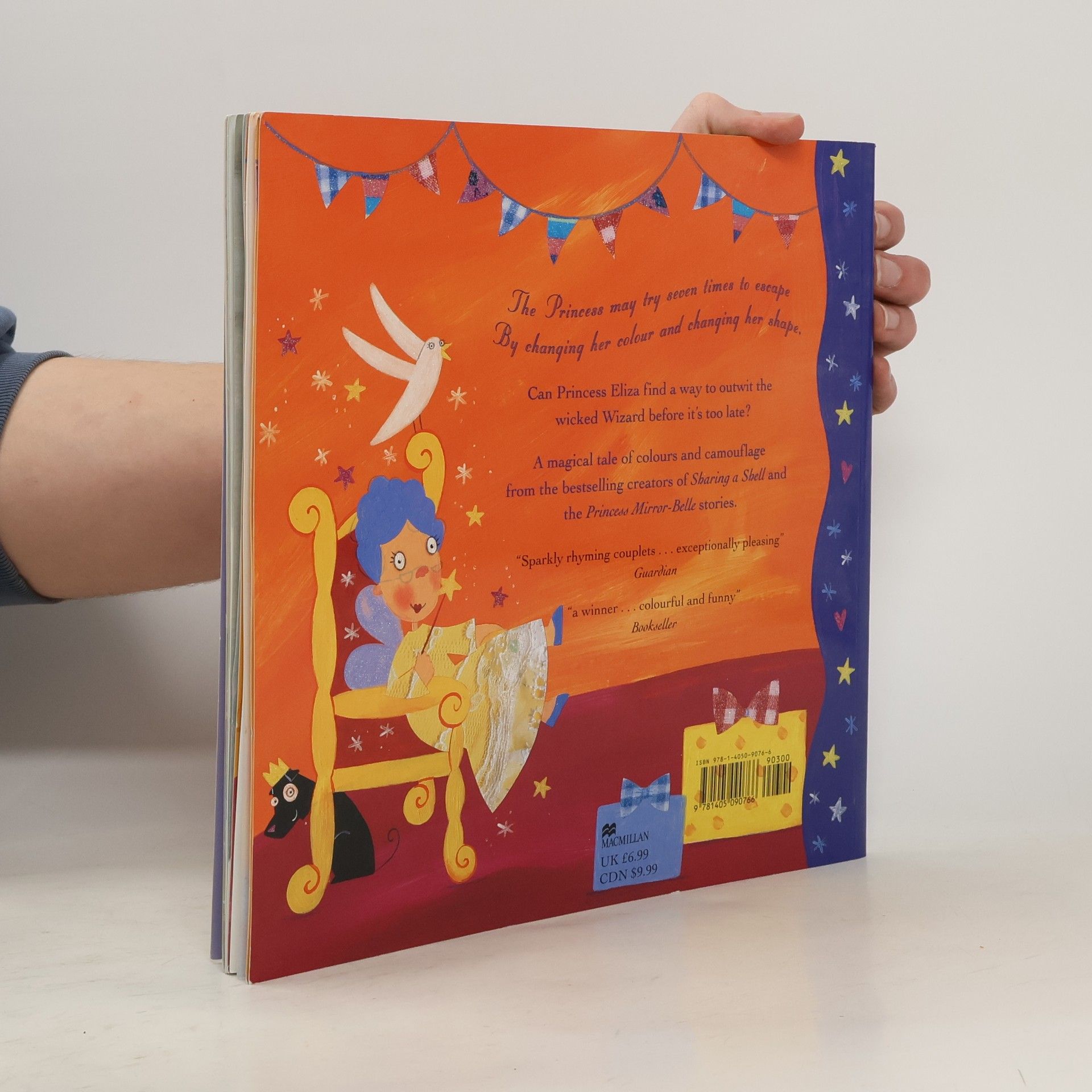 The princess may try seven times to escape By changing her colour and changing her shape.But each time Princess Eliza changes – into a blue fish, a yellow chick, an orange fox or a black cat – the wicked Wizard finds her and sets her another horrible task. Will this plucky princess be able to outwit him and escape back to the palace in time to cut her birthday cake? Press the 10 interactive sound buttons and bring the story to life!The perfect gift for all fans of Julia Donaldson and Lydia Monks, creators of the bestselling picture book What the Ladybird Heard.