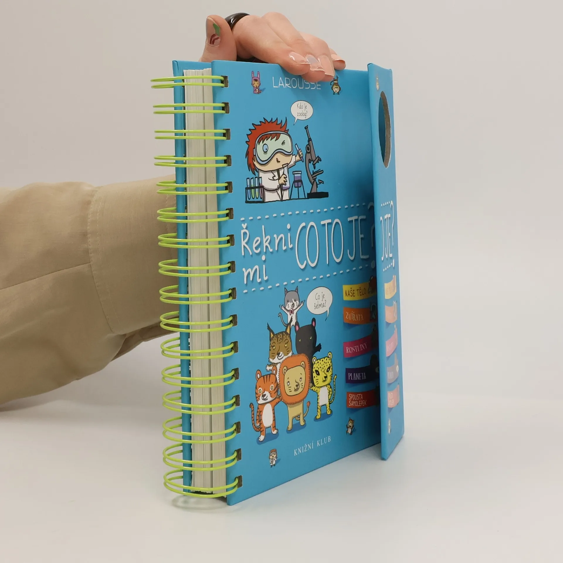 Další z úspěšných encyklopedií pro nejmenší (Řekni mi proč, Řekni mi jak) obsahuje odpovědi na více než 200 běžných dětských otázek. Jsou uspořádané podle témat do čtyř velkých oblastí: lidské tělo, zvířata, rostliny, Země. S pomocí této knihy mohou děti zábavným způsobem objevovat svět kolem sebe. Dozvědí se základní informace o fungování svého těla, o rozmanitosti svět zvířat, o životě rostlin a o planetě, na níž žijeme. Každou tematickou kapitolu doplňují samolepky a veselé obrázky.