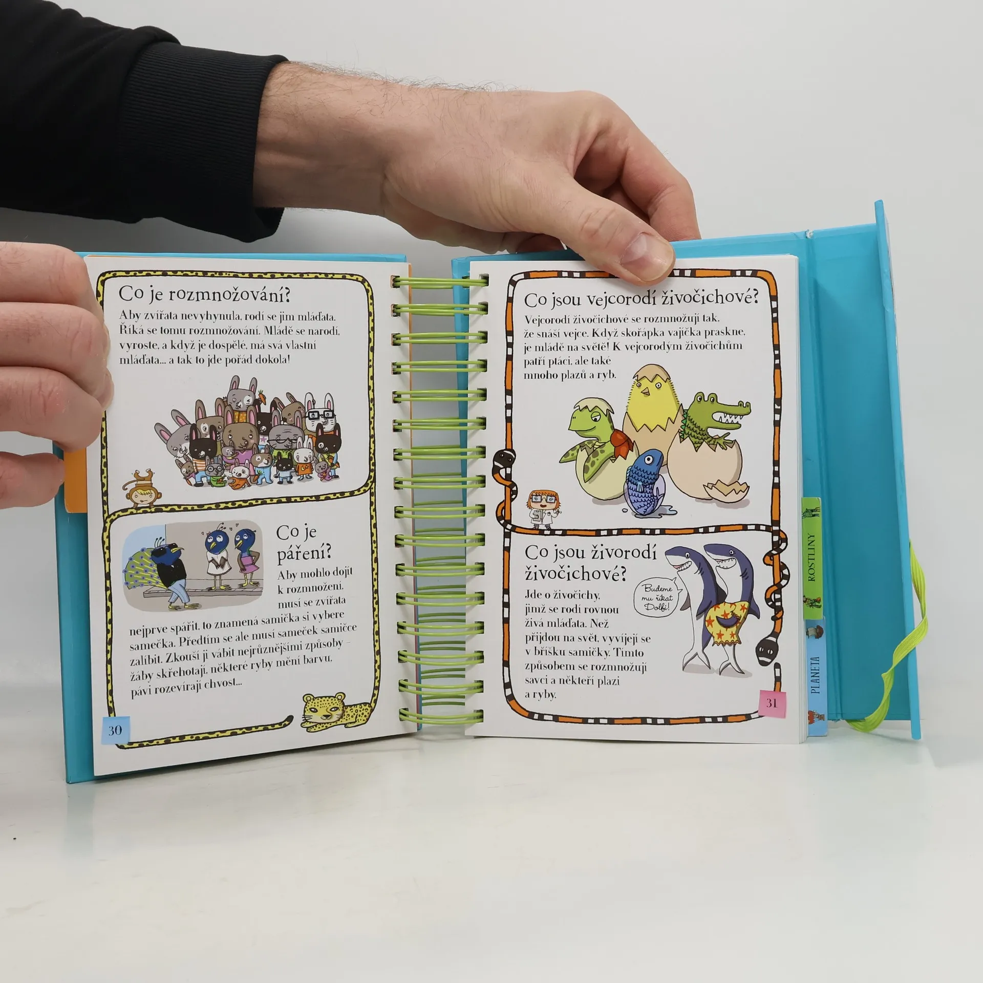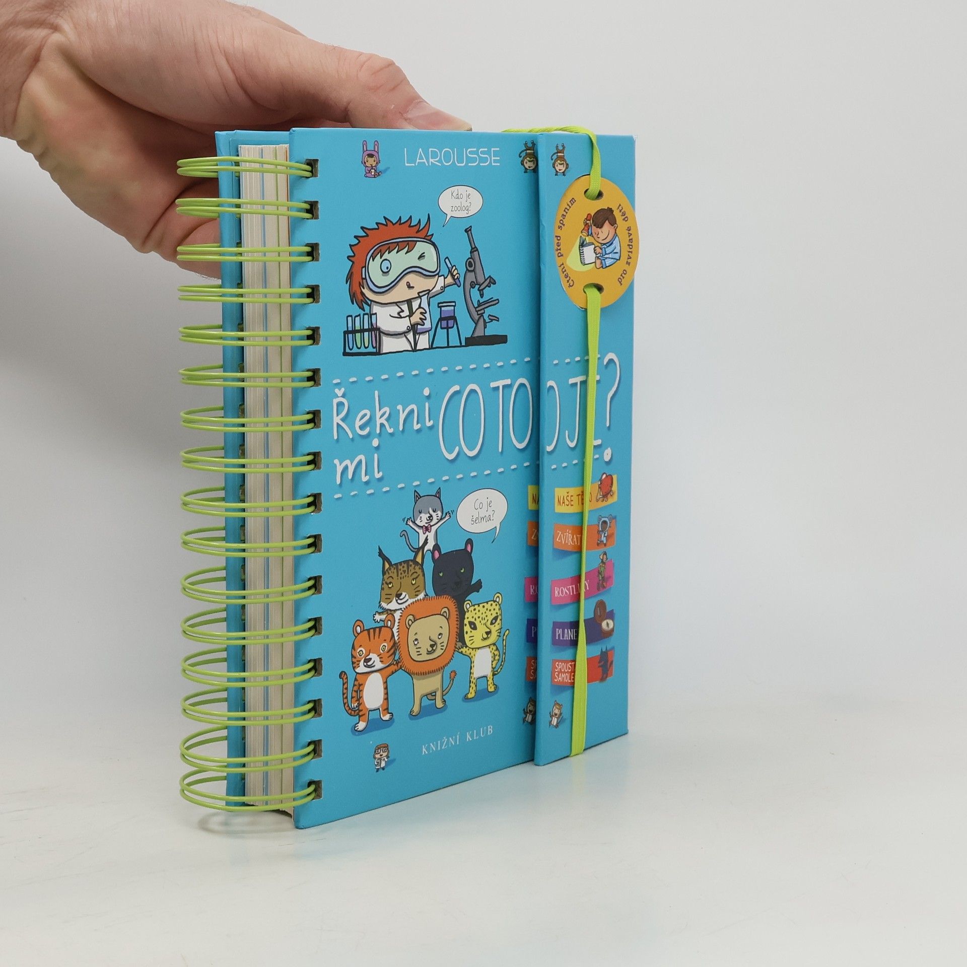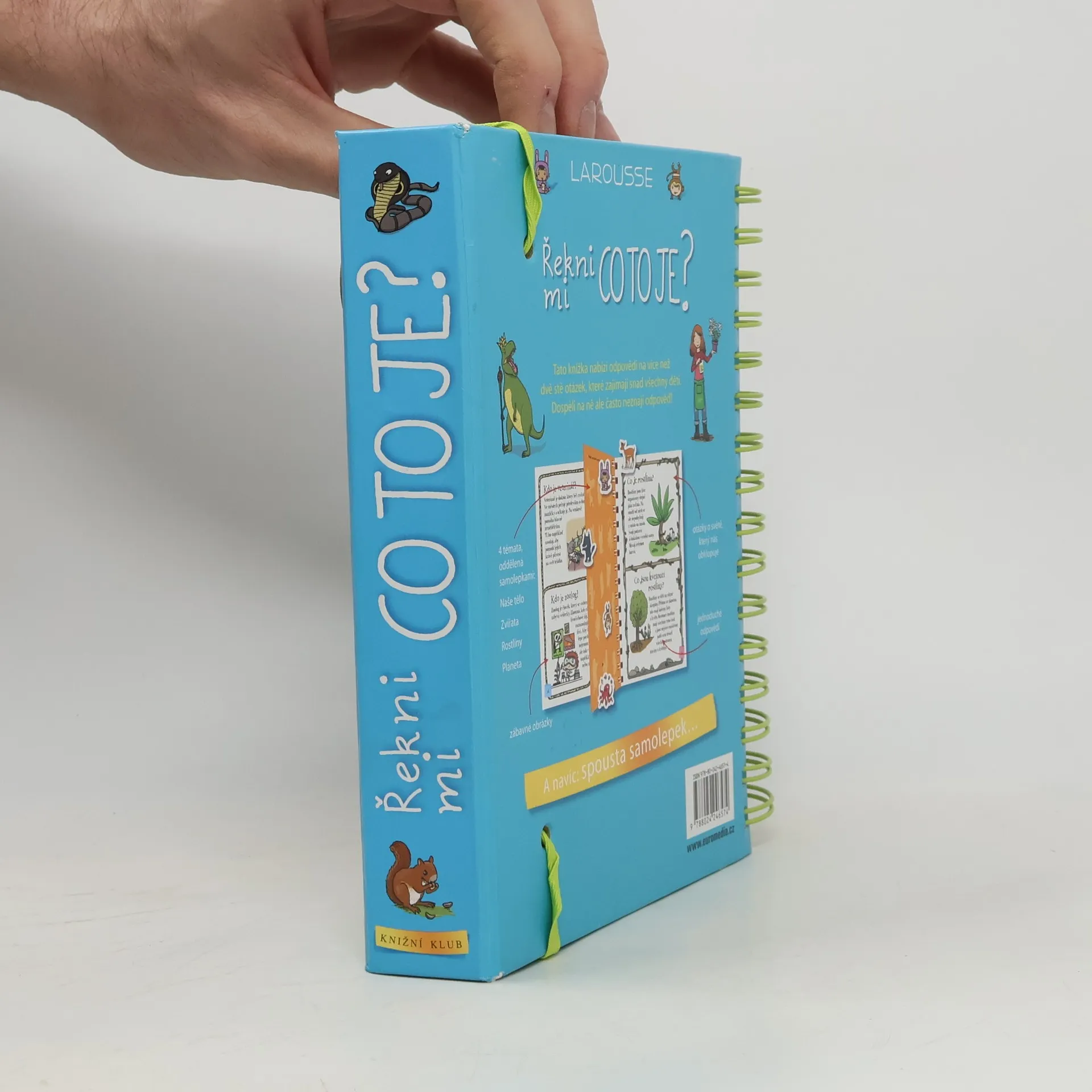 Další z úspěšných encyklopedií pro nejmenší (Řekni mi proč, Řekni mi jak) obsahuje odpovědi na více než 200 běžných dětských otázek. Jsou uspořádané podle témat do čtyř velkých oblastí: lidské tělo, zvířata, rostliny, Země. S pomocí této knihy mohou děti zábavným způsobem objevovat svět kolem sebe. Dozvědí se základní informace o fungování svého těla, o rozmanitosti svět zvířat, o životě rostlin a o planetě, na níž žijeme. Každou tematickou kapitolu doplňují samolepky a veselé obrázky.