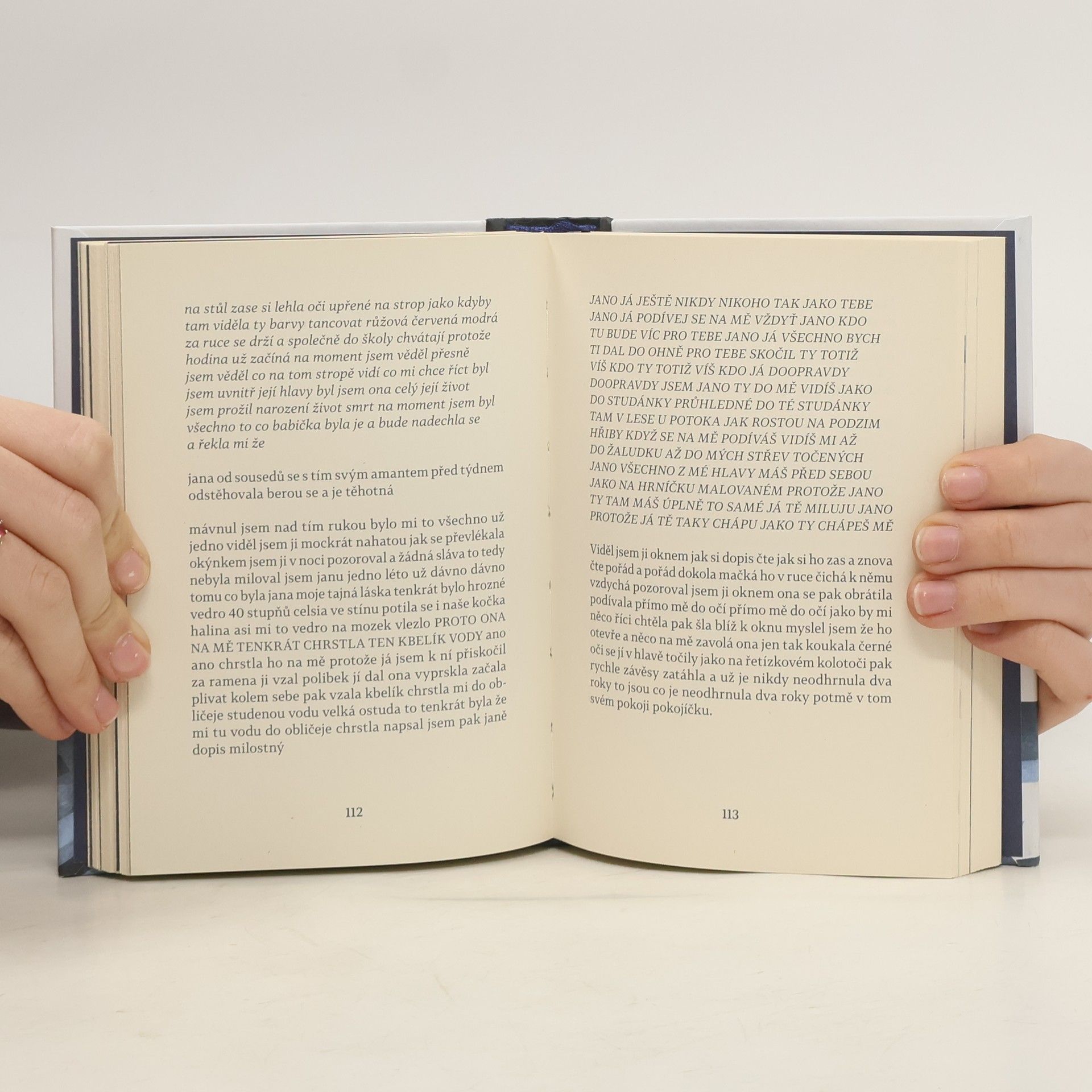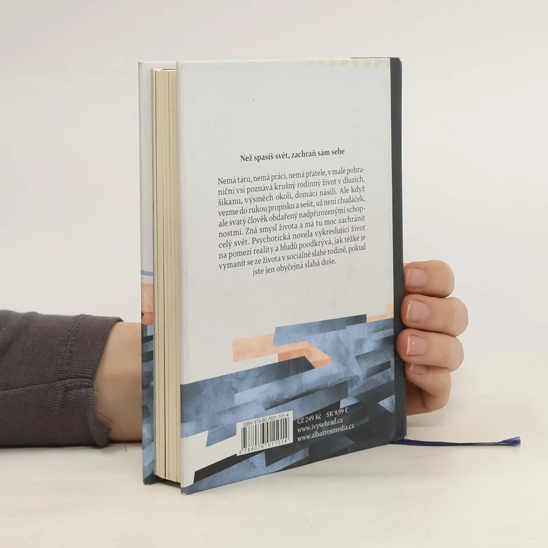 Nemá tátu, nemá práci, nemá přátele, v malé pohraniční vsi poznává krušný rodinný život v dluzích, šikanu, výsměch okolí, domácí násilí. Ale když vezme do rukou propisku a sešit, už není chudáček, ale svatý člověk obdařený nadpřirozenými schopnostmi. Zná smysl života a má tu moc zachránit celý svět. Psychotická novela vykreslující život na pomezí reality a bludů poodkrývá, jak těžké je vymanit se ze života v sociálně slabé rodině, pokud jste jen obyčejná slabá duše.