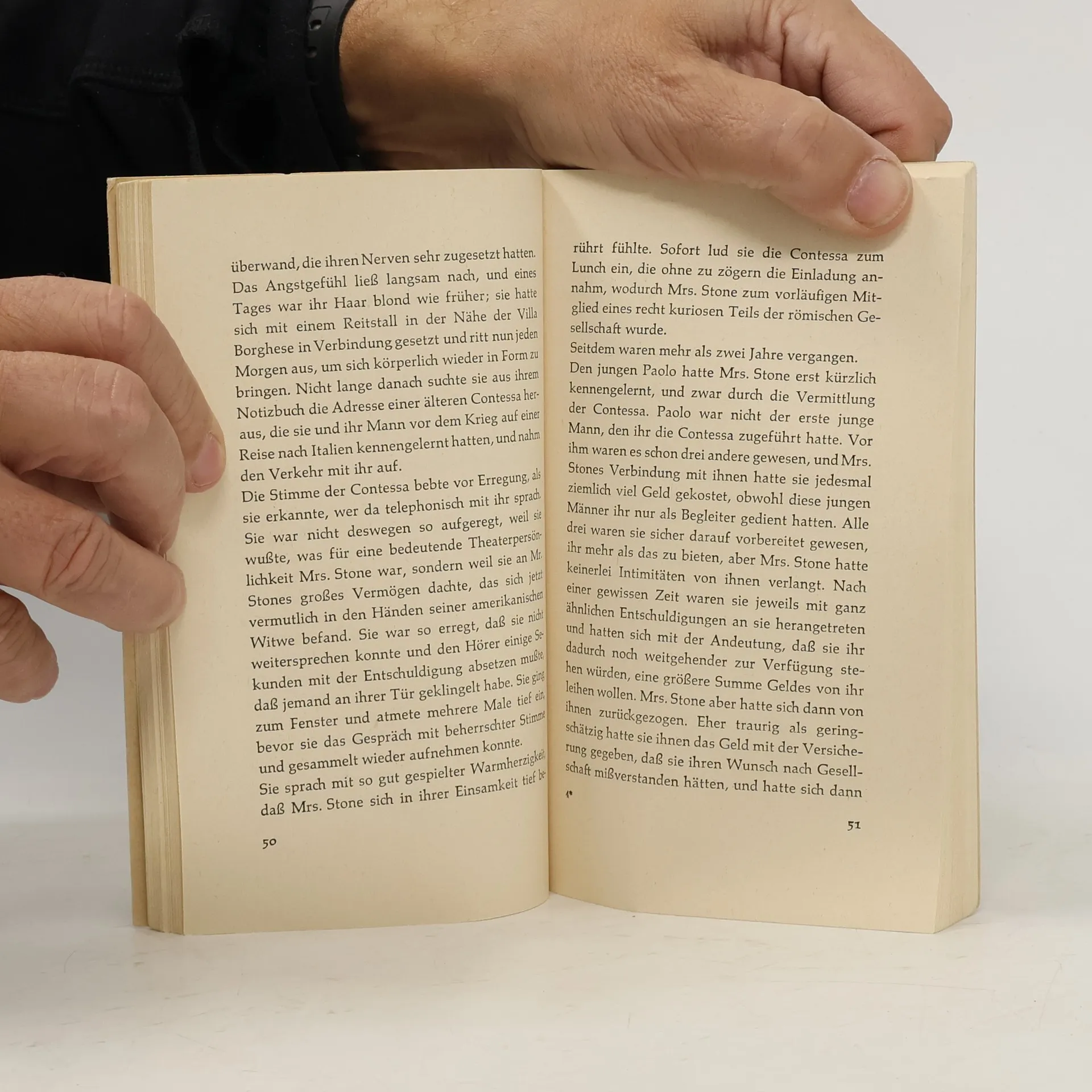 Karen Stone, eine alternde Schauspielerin, sucht ebenso wie ihre literarische Schwester Alexandra del Lago, Prinzessin von Kosmopolis, aus Tennessee Williams' Stück Süßer Vogel Jugend, in der Beziehung zu jugendlichen Liebhabern sowohl ihren beruflichen Abstieg als auch ihren körperlichen Verfall zu vergessen. Nach dem Ende ihrer Bühnenlaufbahn und nach dem Tod ihres wohlhabenden Mannes flieht sie alle bisherigen Freunde und versucht, im Rom der Nachkriegszeit einen neuen Anfang zu finden. Eine verarmte alte Contessa scheint Mrs. Stones »Wunsch nach Gesellschaft« zu verstehen und vermittelt ihr neue Bekanntschaften, die diese, sobald sie ihr als Kuppelei deutlich werden, immer wieder löst. Mit Paolo di Leo erlebt sie - von der Contessa inszeniert - einen kurzen »Frühling der Gefühle«, so daß sie sich am Ziel ihrer Sehnsucht glaubt. Paolo jedoch ist käuflich. Er interessiert sich nur für ihr Geld und fordert immer höhere Beträge für sich. Als sie sie ihm verweigert, beleidigt er sie schwer; daraufhin beendet die Contessa die Beziehung. In ihrer Furcht vor erneuter Einsamkeit, dieser »furchtbaren Leere«, nimmt Karen Stone einen Landstreicher in ihr Haus, der ihr schon lange Zeit gefolgt ist. Sie glaubt, ihrem »Dahintreiben« nun endgültig ein Ende gemacht zu haben.