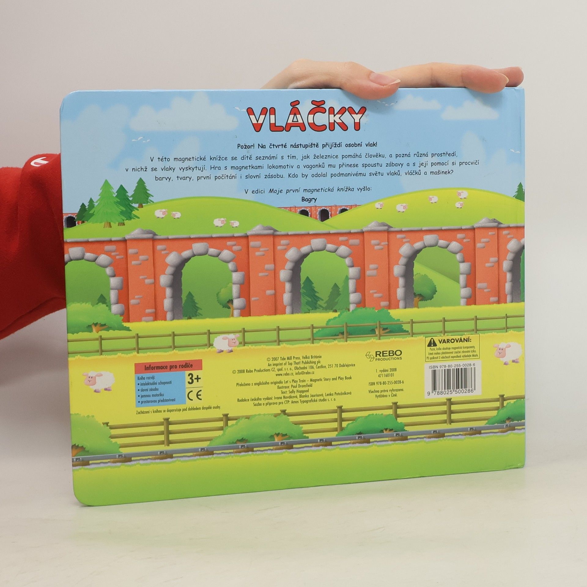 V této magnetické knížce se dítě seznámí s tím, jak železnice pomáhá člověku, a pozná různá prostředí, v nichž se vlaky vyskytují. Hra s magnetkami lokomotiv a vagonků mu přinese spoustu zábavy a s její pomocí si procvičí barvy, tvary, první počítání i slovní zásobu. Kdo by odolal podmanivému světu vlaků, vláčků a mašinek?