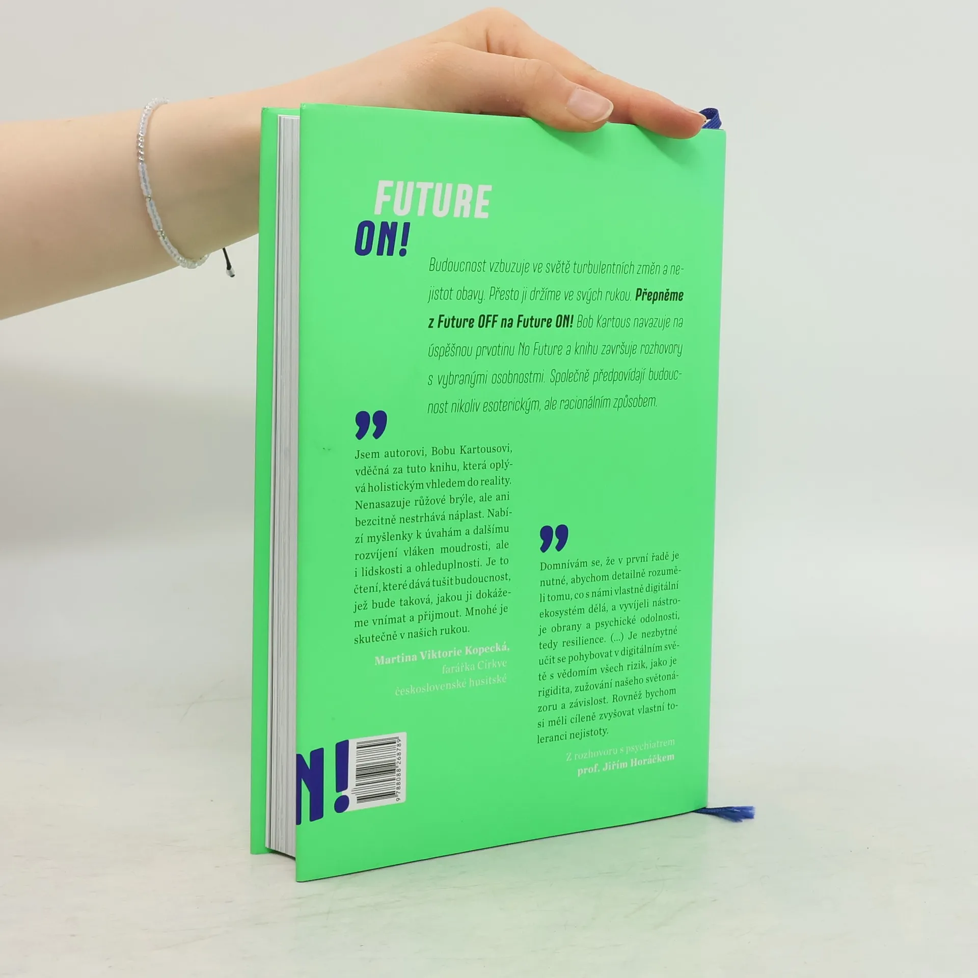 Budoucnost vzbuzuje obavy v turbulentním světě změn a nejistot, ale můžeme ji ovlivnit. Bob Kartous navazuje na svou předchozí knihu a prostřednictvím rozhovorů s vybranými osobnostmi předpovídá budoucnost racionálně, nikoli esotericky. Mnoho lidí touží znát svou budoucnost, což je důvodem, proč esoterika v 21. století, i v době pokročilého vědeckého poznání, zažívá rozmach. Tato doba je nejen technologická, ale také plná nejistoty, což činí budoucnost mlhavou a obtížně snesitelnou. Lidé se s tím vyrovnávají různými způsoby, buď se snaží uniknout, nebo čelit realitě. V důsledku rostoucí úzkosti mnozí vnímají svůj život jako „únikovou hru“, což je varovné. Technologický pokrok se žene vpřed, zatímco lidská adaptace se pomalu přizpůsobuje. Tato kniha analyzuje změny evolučních podmínek v digitálním světě a nabízí způsoby, jak uchopit vlastní budoucnost, abychom se jí nemuseli bát. Cílem je, aby naše děti mohly do budoucnosti vstupovat bez strachu. V závěru knihy se objevují rozhovory s osobnostmi jako Jiří Horáček, Anna Šabatová a další, které obohacují diskusi o budoucnosti. Předmluvu napsala Martina Viktorie Kopecká.