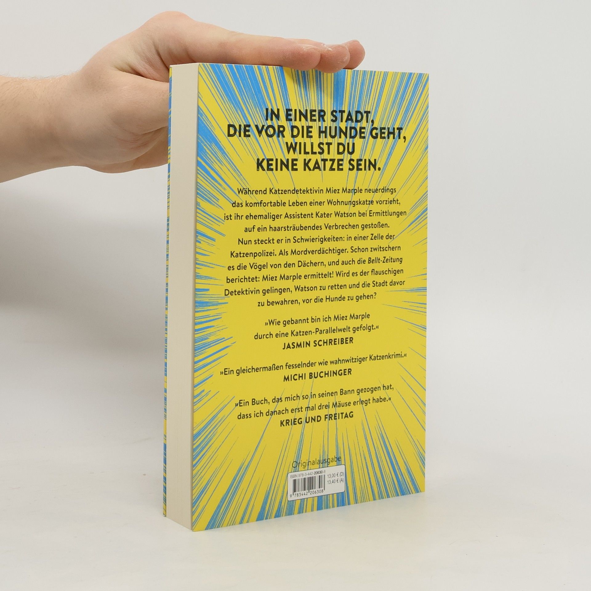 In einer Stadt, die vor die Hunde geht, willst du keine Katze sein. »Wie gebannt bin ich Miez Marple durch eine Katzen-Parallelwelt gefolgt, die so kreativ und besonders ist, dass ich das Buch nicht aus der Hand legen konnte!« Jasmin Schreiber Aus gutem Grund hat Katzendetektivin Miez Marple beschlossen, das komfortable Leben einer Wohnungskatze zu führen. Wäre da nicht ihr guter Freund Kater Watson, der bei seinen Ermittlungen gegen die Betreiber eines Katzengras-Onlineshops auf ein haarsträubendes Verbrechen gestoßen ist und nun in Schwierigkeiten steckt: in einer Zelle der Katzenpolizei. Als Mordverdächtiger. Schon zwitschern es die Vögel von den Dächern und auch die Bellt-Zeitung berichtet: Miez Marple ermittelt! Wird es der flauschigen Detektivin gelingen, Watson zu retten und die Stadt davor zu bewahren vor die Hunde zu gehen?