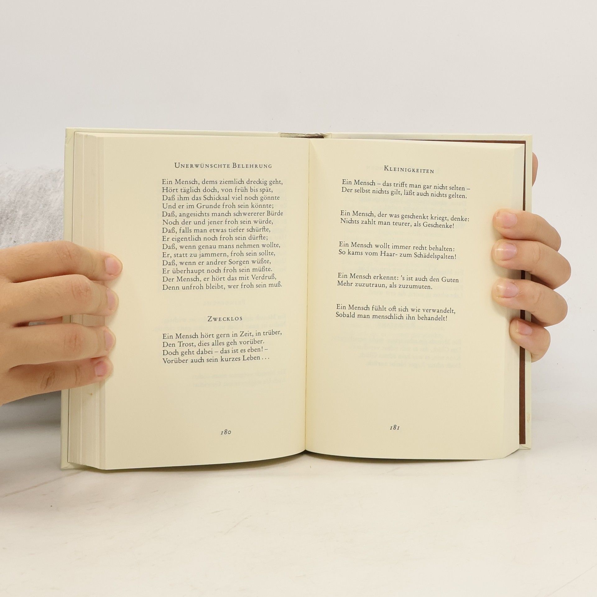 Wie kein anderer hat Eugen Roth auf humorvolle Weise die Höhen und Tiefen der menschlichen Seele erkundet. Er nimmt die Schwächen aufs Korn und erweist sich in seinen Gedichten immer wieder als liebevoll-verständnisvoller Menschenkenner, dem Pathos und pompöse Gesten fremd sind. Diese Neuausgabe enthält Eugen Roths berühmte Verssammlungen "Ein Mensch", "Mensch und Unmensch" und "Der letzte Mensch"