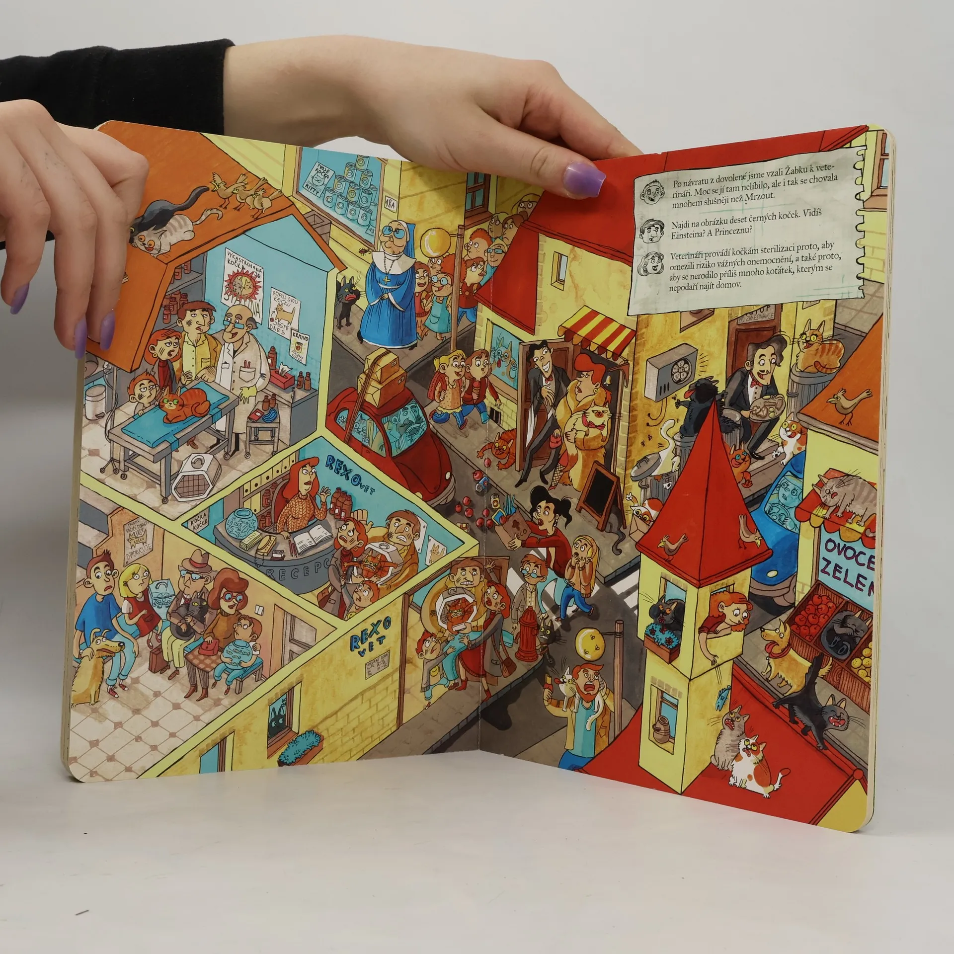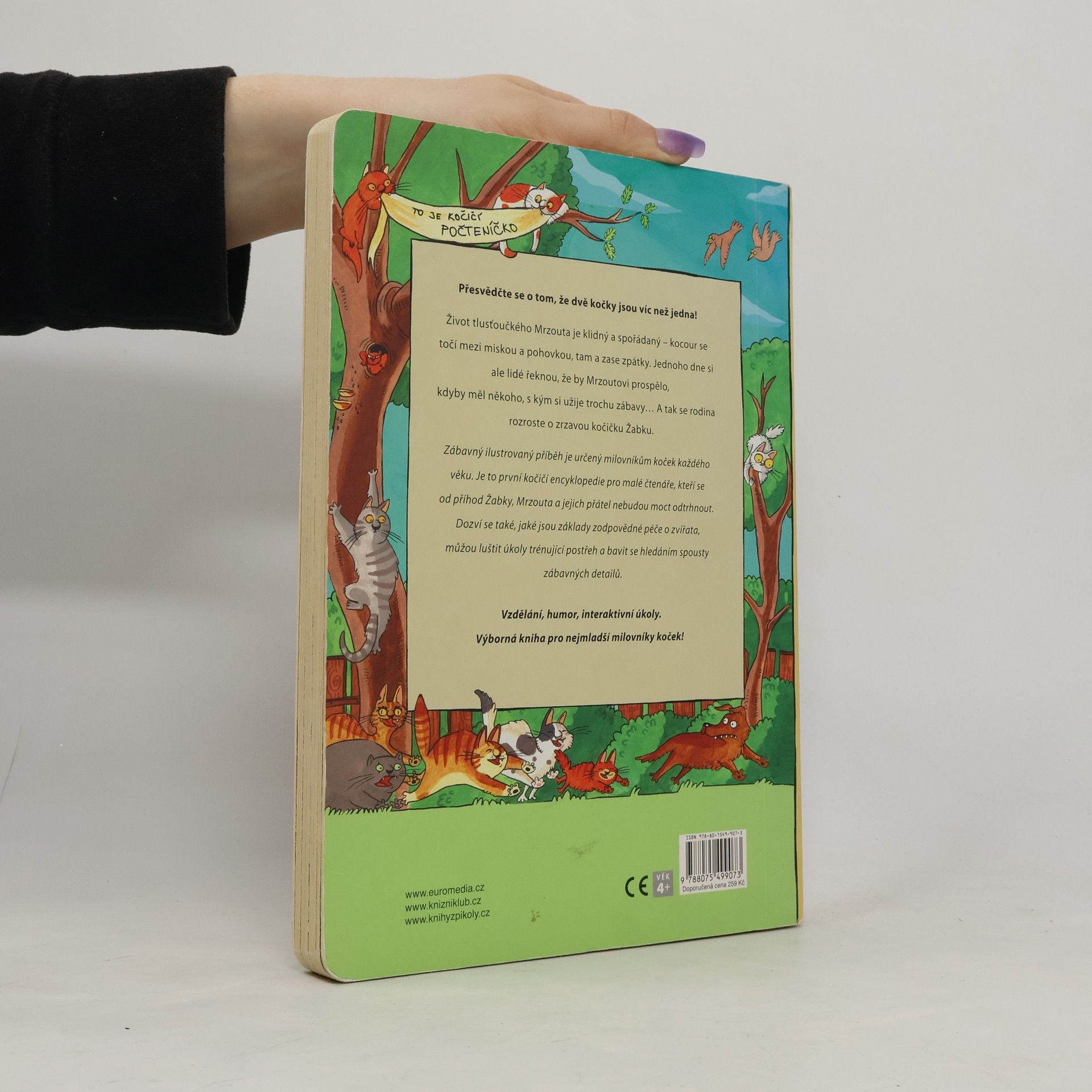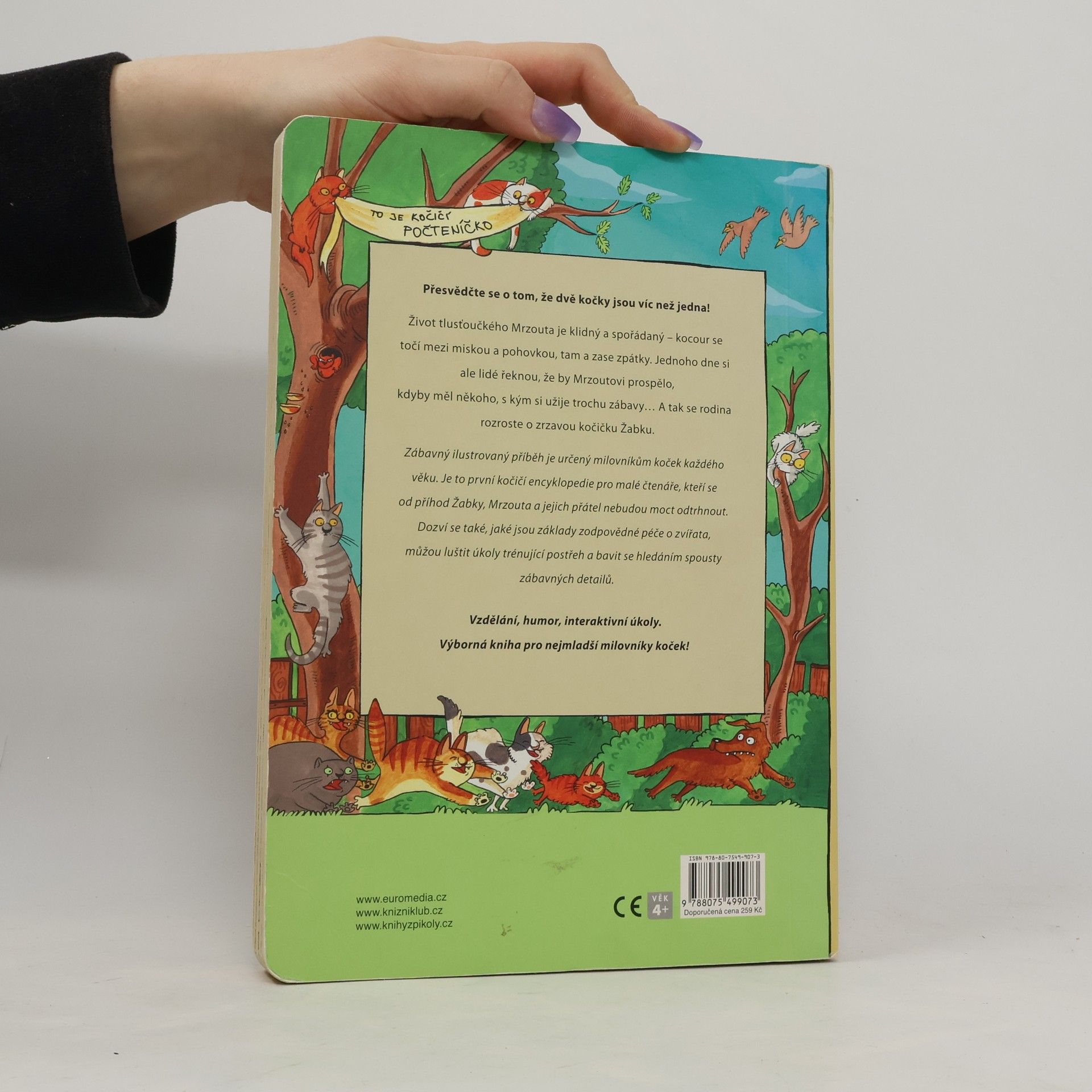 Vzdělání, humor i interaktivní úkoly najdou děti v úžasném leporelu plném koček a kocourů. Zábavný ilustrovaný příběh je určený milovníkům koček každého věku. Je to první kočičí encyklopedie pro malé čtenáře, kteří se od příhod Žabky, Mrzouta a jejich přátel nebudou moct odtrhnout. Zároveň se dozví, jaké jsou základy zodpovědné péče o zvířata, můžou luštit úkoly trénující postřeh a bavit se hledáním spousty zábavných detailů. Přesvědčte se o tom, že dvě kočky jsou víc než jedna!