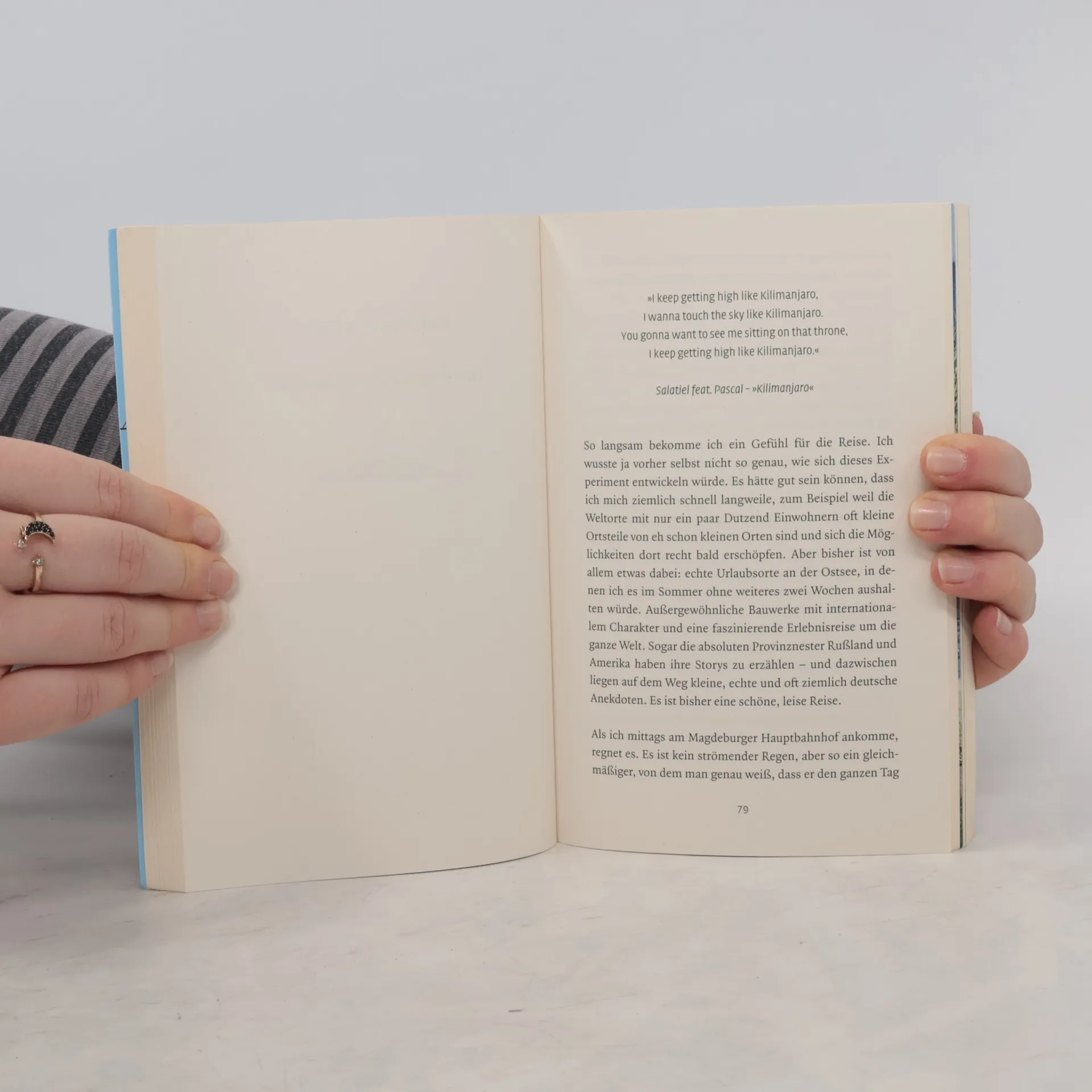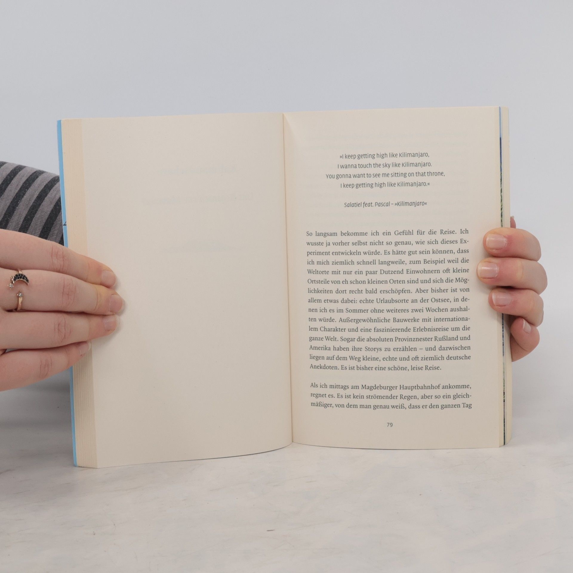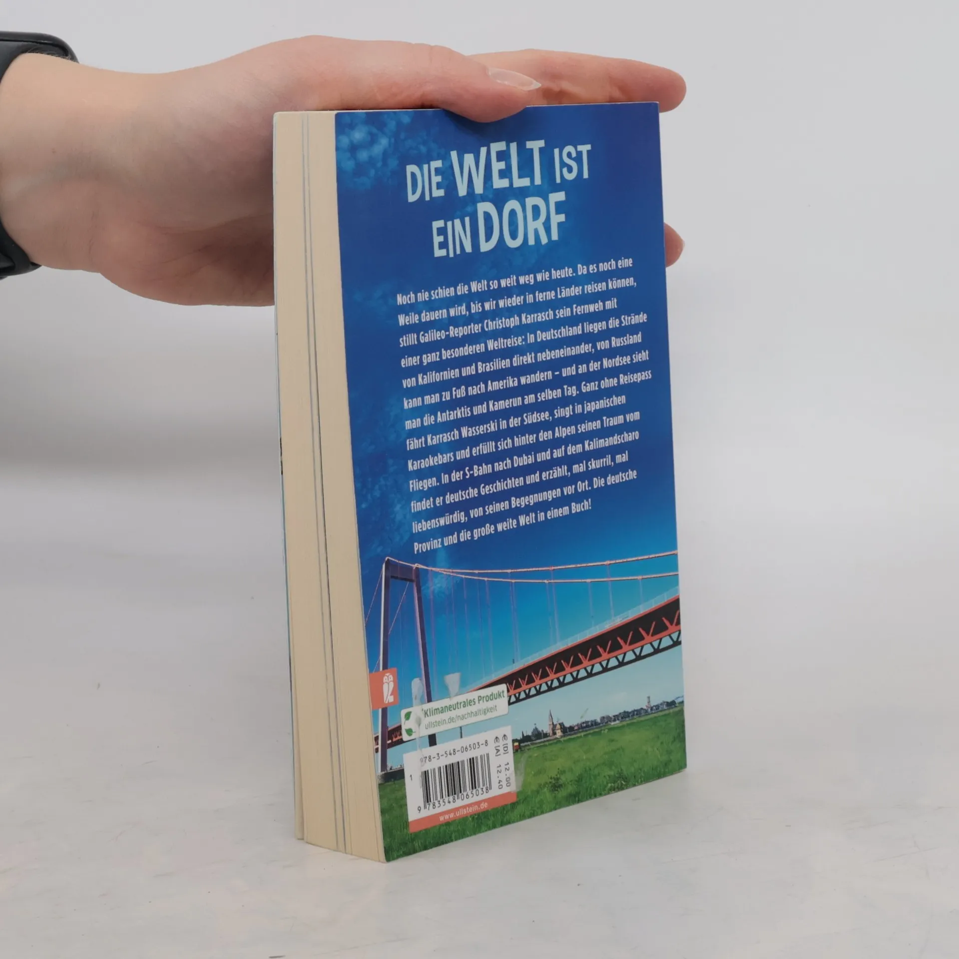 »Karraschs neuer ›Reiseführer‹ sorgt für Furore in Pandemie-Zeiten.« Andrea Kahlmeier, Express Noch nie schien die Welt so weit weg wie heute. Da es noch eine Weile dauern wird, bis wir wieder in ferne Länder reisen können, stillt Galileo-Reporter Christoph Karrasch sein Fernweh mit einer ganz besonderen Weltreise: In Deutschland liegen die Strände von Kalifornien und Brasilien direkt nebeneinander, von Russland kann man zu Fuß nach Amerika wandern – und an der Nordsee sieht man die Antarktis und Kamerun am selben Tag. Ganz ohne Reisepass fährt Karrasch Wasserski in der Südsee, singt in japanischen Karaokebars und erfüllt sich hinter den Alpen den Traum vom Fliegen. In der S-Bahn nach Dubai und auf dem Kalimandscharo findet er deutsche Geschichten und erzählt, mal skurril, mal liebenswürdig, von seinen Begegnungen vor Ort. Die deutsche Provinz und die große weite Welt in einem Buch!