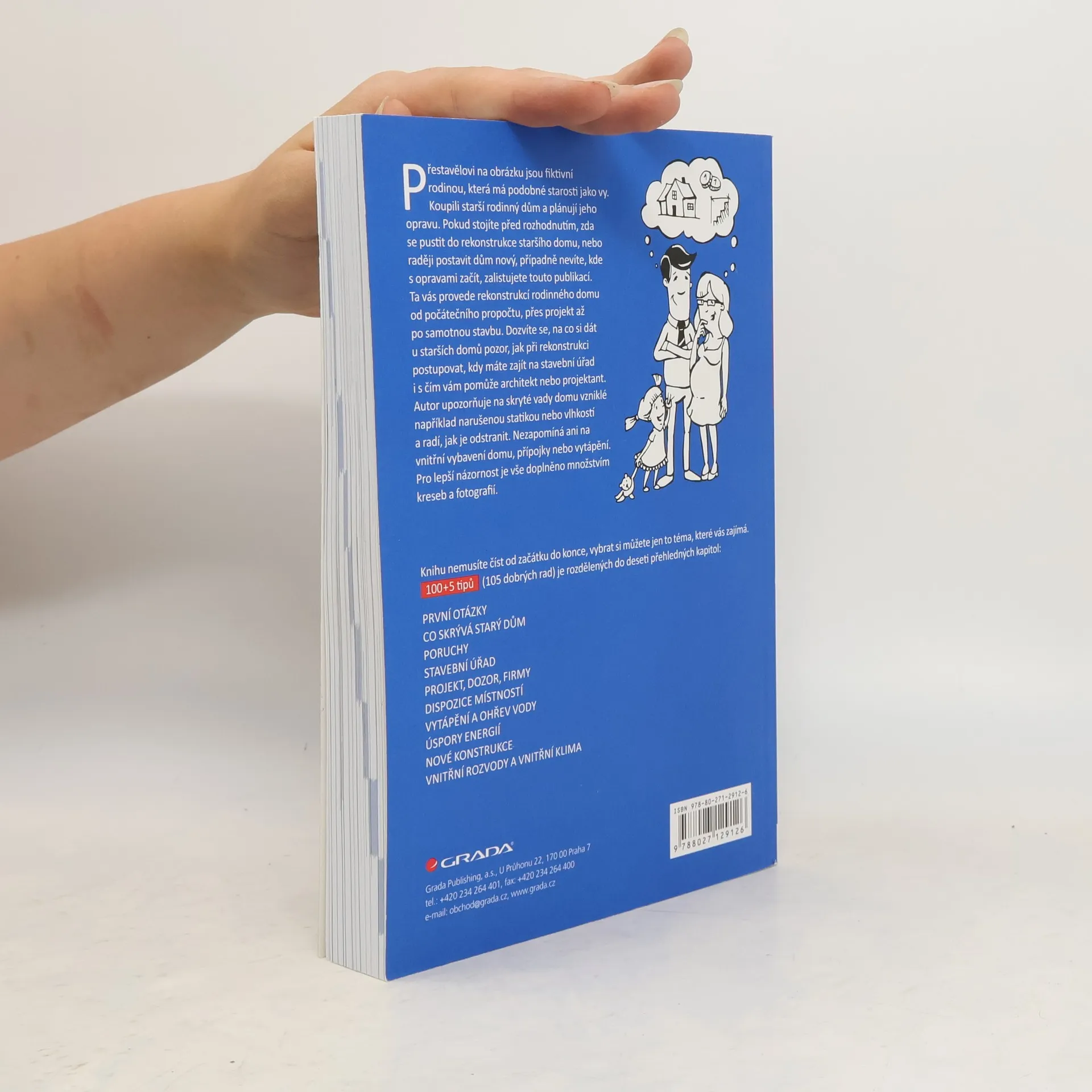Máte starší rodinný dům nebo chcete rodinný dům koupit? Chtěli byste jej opravit, ale nevíte jak na to? 100+5 tipů, které naleznete v knize, vás provede rekonstrukcí rodinného domu od počátečního propočtu, přes projekt a stavební úřad, až po samotnou stavbu. Dozvíte se na co si dát u starších domů pozor, jak při rekonstrukci postupovat, kdy máte jít na stavební úřad i s čím vám pomůže architekt či projektant. V knize najdete návod jak odhalit skryté vady domu vzniklé například porušenou statikou nebo vlhkostí, jak je odstranit a kolik oprava bude stát. Autor nezapomíná ani na vnitřní vybavení domu, přípojky nebo vytápění. Koncept tipů umožní čtenáři přečíst si přesně o tom tématu, které potřebuje, aniž by se zabýval celou knihou. Pro lepší názornost je vše doplněno množstvím obrázků a fotografií. Modelová rodina Přestavělových, která právě koupila rodinný dům a plánuje jeho opravu, má podobné starosti jako vy. Zalistujte a přesvědčte se sami. (3., aktualizované a rozšířené vydání)