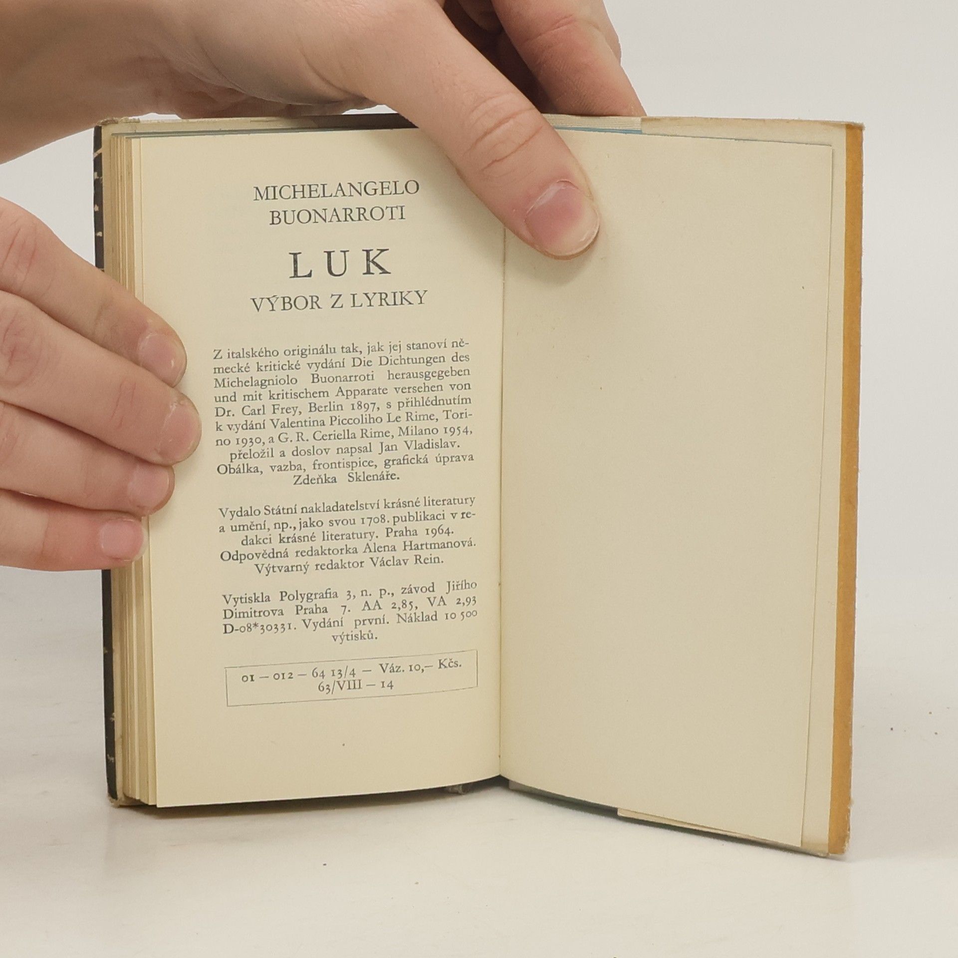 Z veršů, psaných na okraj skic a kreseb, tak jak umělce napadaly den ze dne, ze slok chvatně zaznamenávaných na rubu vlastních i cizích dopisů, jež ležely na dosah ruky v sochařské dílně, z básní, přepsaných po letech výrazným výtvarným rukopisem pro pár přátel na čisté archy papíru ze starých útržků, poznámek a denních záznamů o nákupech pro domácnost, platech hospodyň a výpovědích služkám, vzniklo za šest desítek let mimoděk jedno z největších básnických děl své doby. Výbor z Buonarrotiho lyriky přeložil Jan Vladislav.