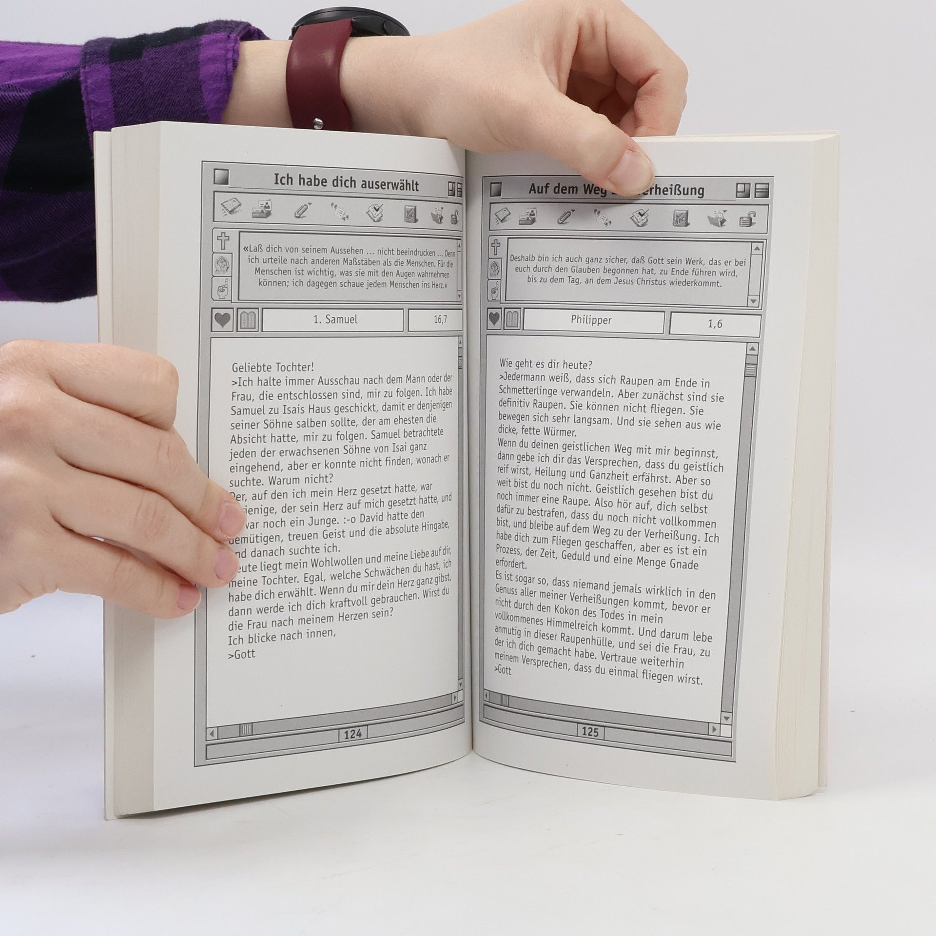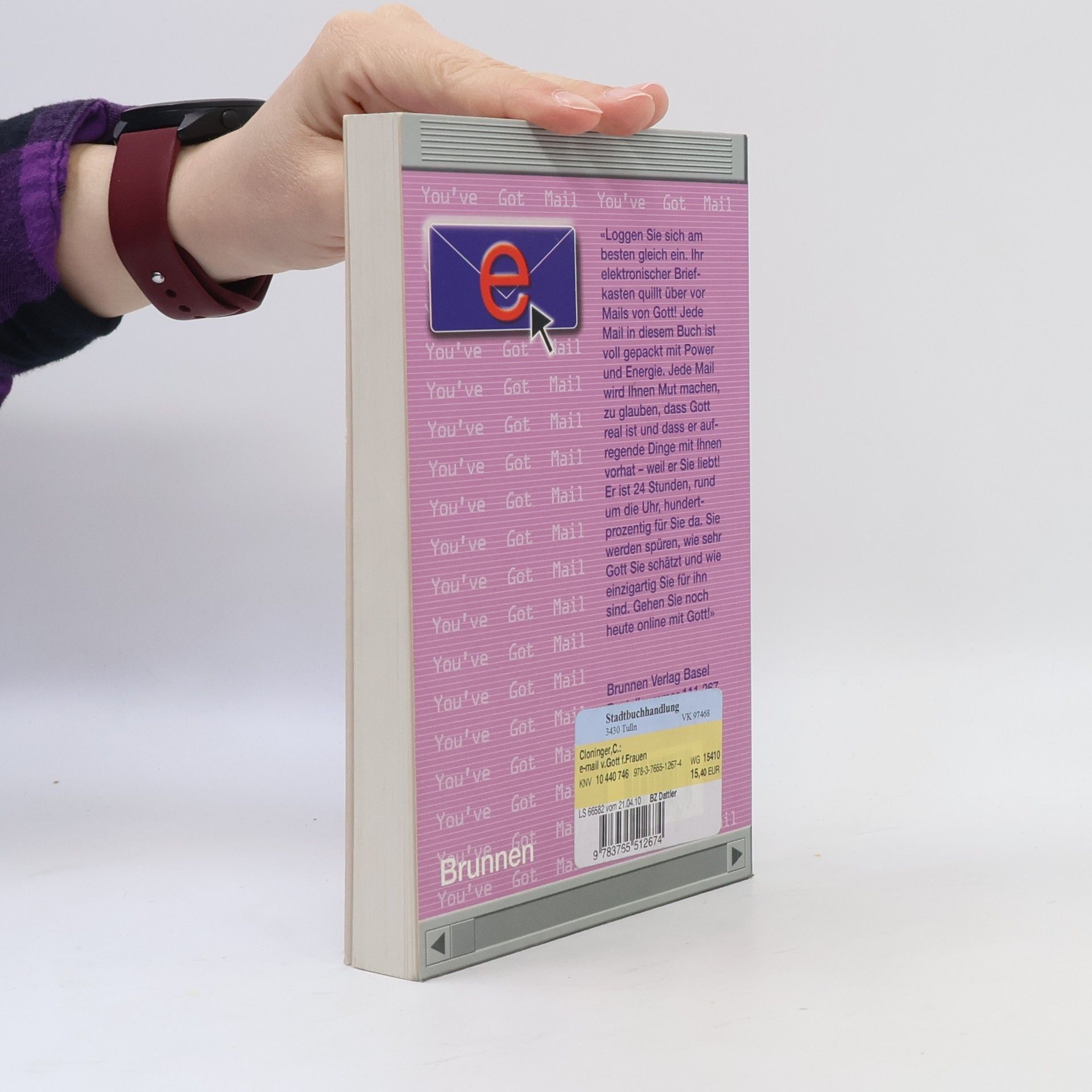 'Loggen Sie sich am besten gleich ein. Ihr elektronischer Briefkasten quillt über vor Mails von Gott! Jede Mail in diesem Buch ist voll gepackt mit Power und Energie. Jede Mail wird Ihnen Mut machen, zu glauben, dass Gott real ist und dass er aufregende Dinge mit Ihnen vorhat – weil er Sie liebt!'. Cover mit Prägeschrift.