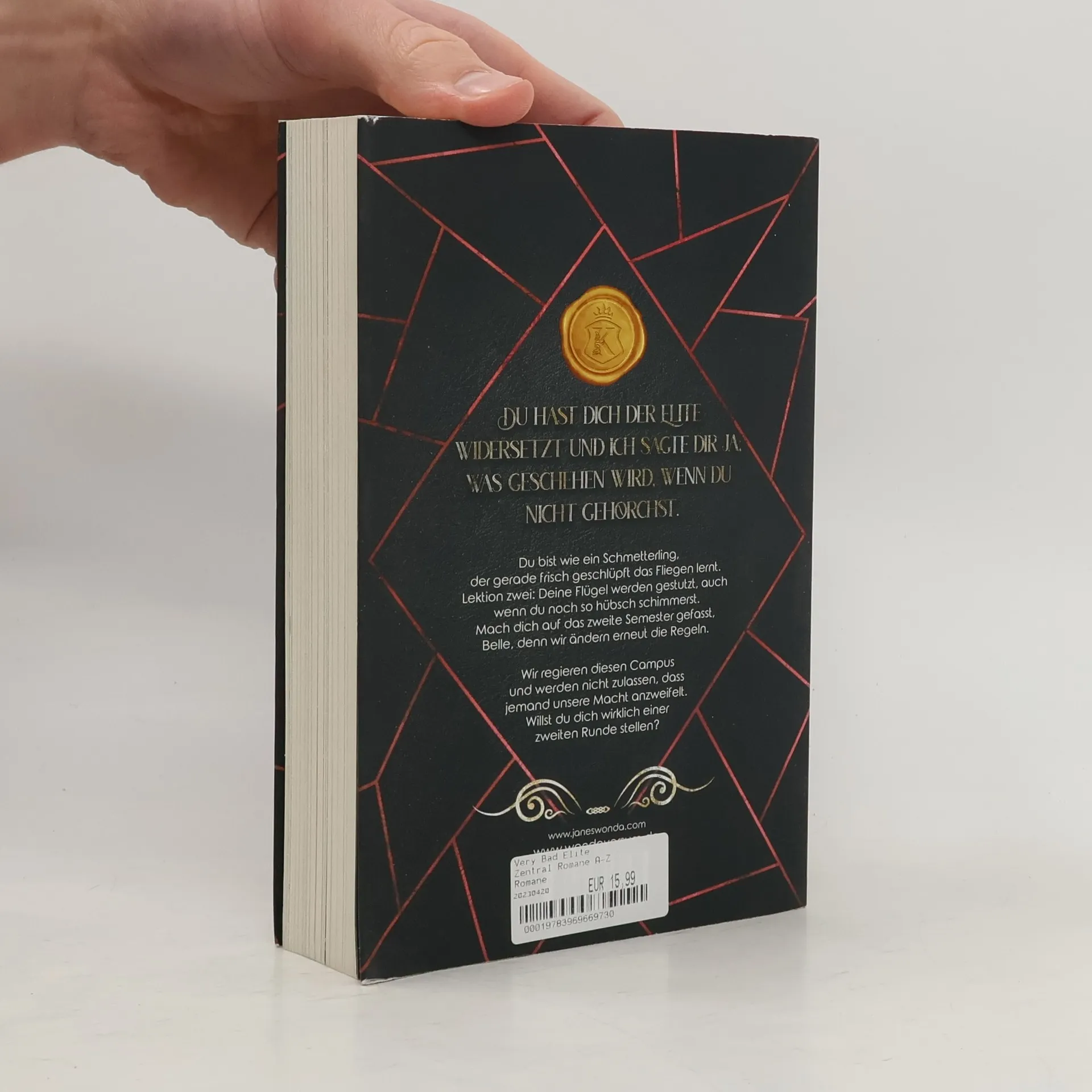 Du hast dich der Elite widersetzt und ich sagte dir ja, was geschehen wird, wenn du nicht gehorchst. Wir regieren diesen Campus und werden nicht zulassen, dass jemand unsere Macht anzweifelt. Willst du dich wirklich einer zweiten Runde stellen? Mable ist vom Campus geflohen, doch sie wird ihr Stipendium nicht aufgeben. Als sie zurück nach Kingston kommt, rechnet sie mit dem Schlimmsten. Tatsächlich tritt aber nicht nur ein neuer Verbündeter auf das Feld, um ihr zu helfen. Wer ist Romeo? Auf welcher Seite steht Vance? Und wieso versuchen die Kings plötzlich, sie vor dem Spiel zu beschützen? Du bist wie ein Schmetterling, der gerade frisch geschlüpft das Fliegen lernt. Lektion zwei: Deine Flügel werden gestutzt, auch wenn du noch so hübsch schimmerst. Mach dich auf das zweite Semester gefasst, Belle, denn wir ändern erneut die Regeln. Flatter, flatter, kleiner Falter. Hoffe, dass ich dich niemals fange. Dark College. Bully Romance. Reverse Harem. Du willst nicht teilen. Sie schon. VERY BAD ELITE Kingston University 2 Band 2 der dunkelromantischen College-Reihe von Bestseller-Autorin J. S. Wonda Enthält gesammelte Gespräche und Interviews zu Band 1 und 2 der Reihe im Anhang • Alle Folgebände handeln von denselben Hauptfiguren und erscheinen voraussichtlich mit Abstand von 4-7 Wochen • Enthält direkte Sprache und explizite Szenen • Bitte verantwortungsvoll lesen