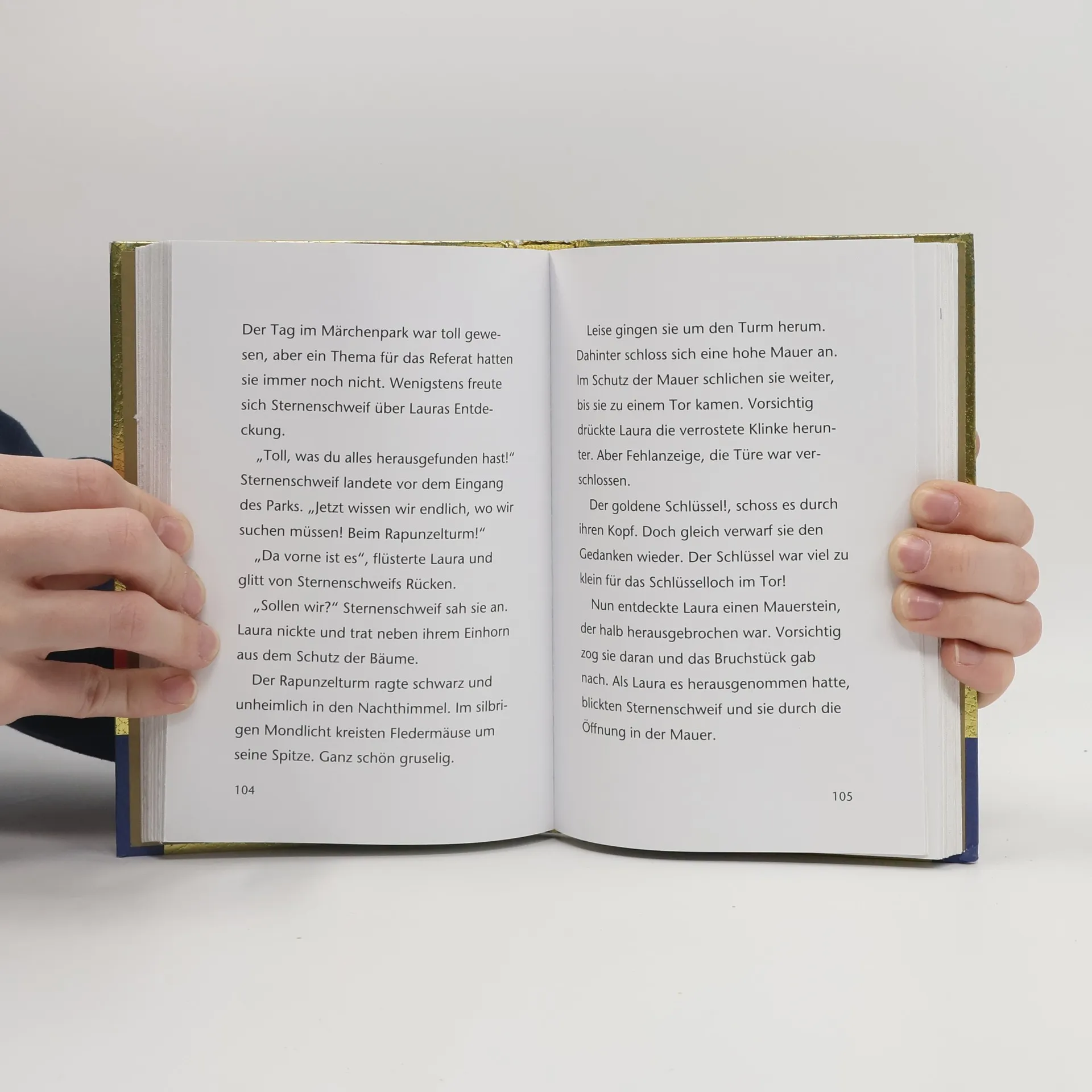 Ein altes, leeres Eintragbuch aus dem Trödelladen fängt plötzlich an, Laura Rätsel zu stellen und Anleitungen zu geben. Bald stellt sich heraus: Es ist ein magischer Auftrag der Ältesten aus Arkadia. Er führt Laura und Sternenschweif zu einem geheimnisvollen, unbeschreiblich schönen Pony, das in einem Märchenpark hinter hohen Mauern lebt. Die beiden möchten das Pony befreien, doch dazu brauchen sie die Hilfe ihrer kleinen Leserinnen. Nur gemeinsam mit ihnen können sie die Rätsel lösen, die hinter den verschlossenen Seiten stecken.