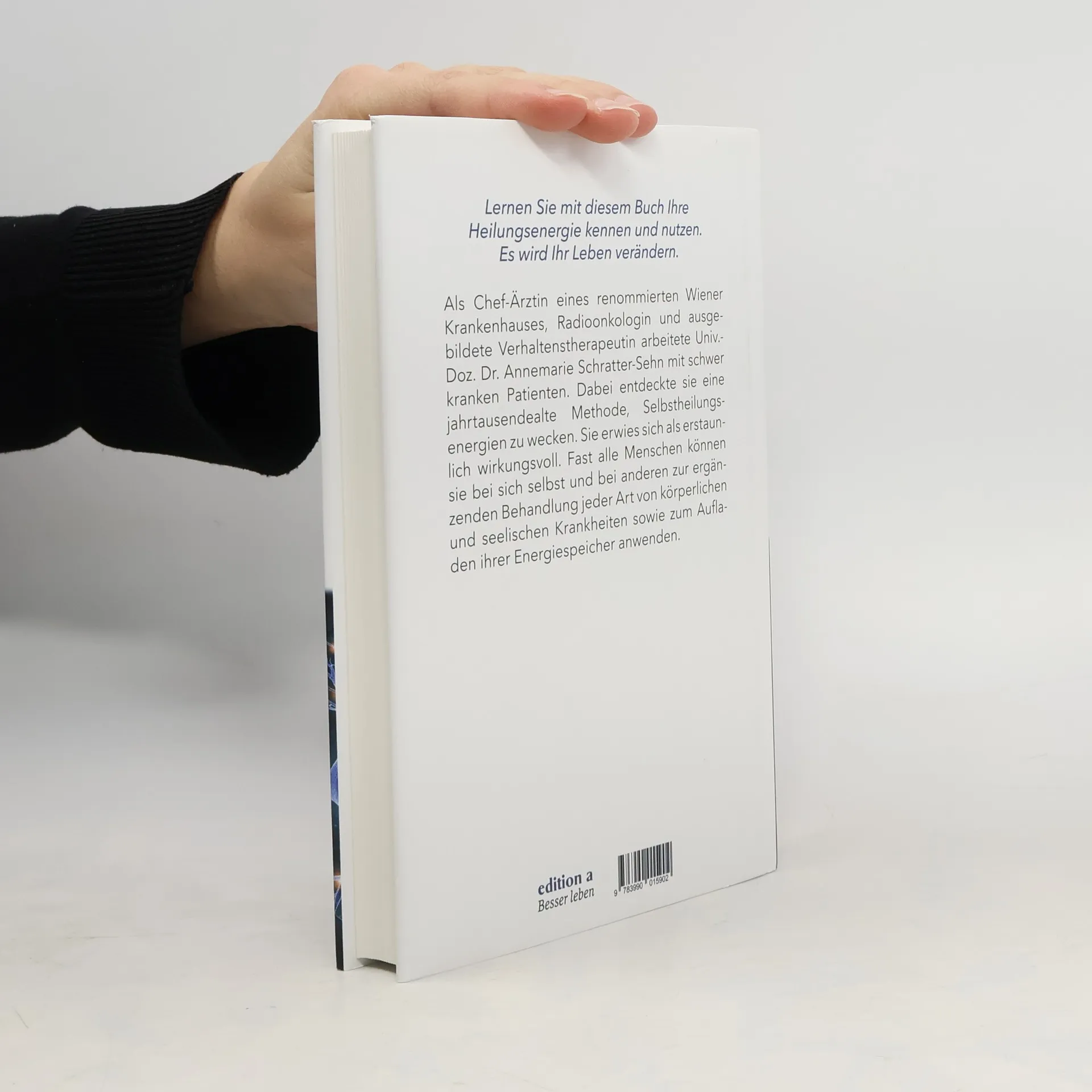 Als Chef-Ärztin eines renommierten Wiener Krankenhauses, Radioonkologin und ausgebildete Verhaltenstherapeutin arbeitete Univ.-Doz. Dr. Annemarie Schratter-Sehn mit schwer kranken Patienten. Dabei entdeckte sie eine jahrtausendealte Methode, Selbstheilungsenergien zu wecken. Sie erwies sich als erstaunlich wirkungsvoll. Fast alle Menschen können sie bei sich selbst und bei anderen zur ergänzenden Behandlung jeder Art von körperlichen und seelischen Krankheiten sowie zum Aufladen ihrer Energiespeicher anwenden.