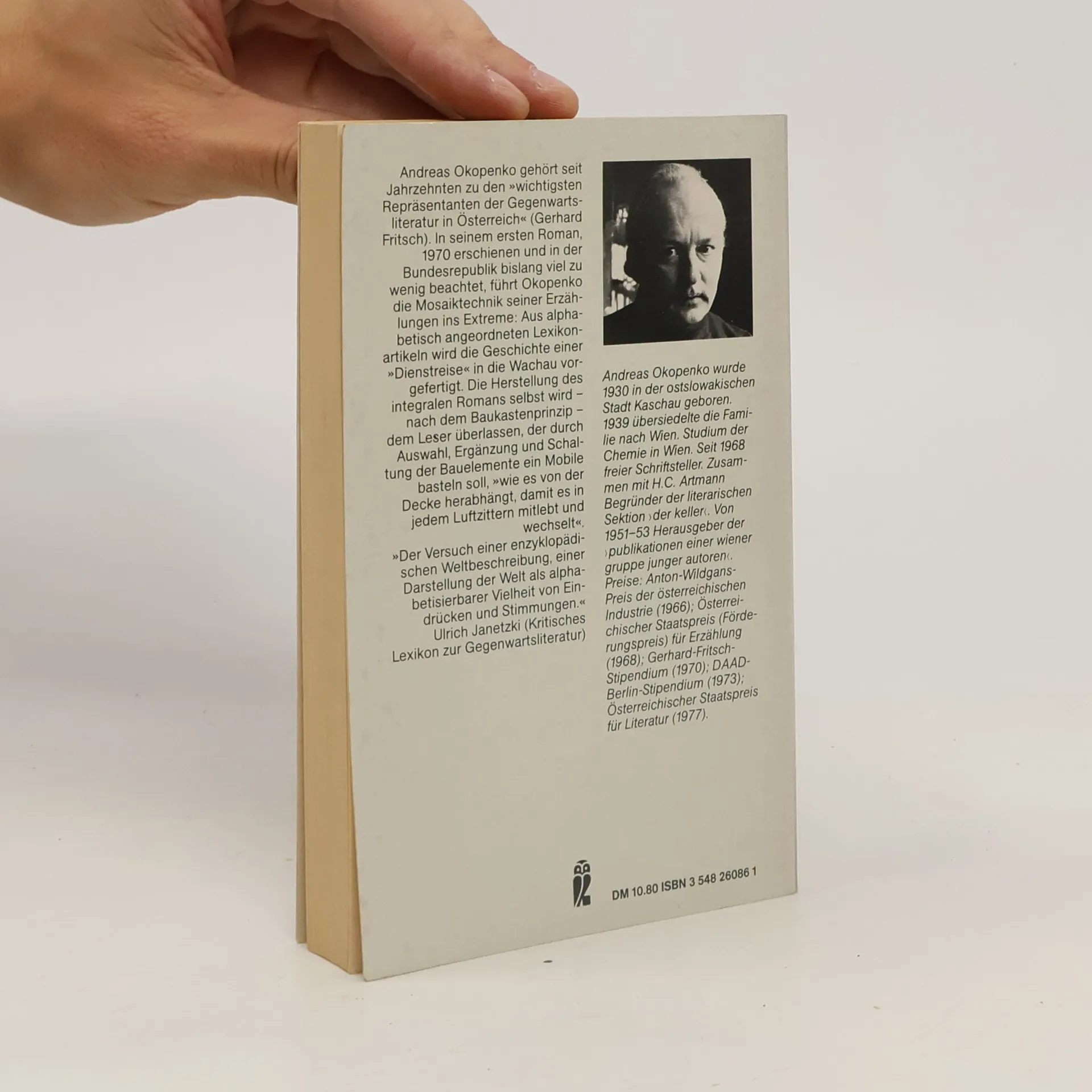 Dieser Roman erzählt keine Geschichte, sondern enthält, alphabetisch geordnet, Impressionen, Parodien, Reflexionen und Nonsens, als Material für eine oder mehrere Geschichten, die sich der Leser selbst zusammenstellen kann. Statt eines Vorworts gibt es eine Gebrauchsanweisung, in der der in Österreich lebende Autor dem Leser mögliche Wege durch den Textdschungel erläutert. Mehr als ein Vierteljahrhundert nach seiner Erstveröffentlichung hat Okopenkos "Mikromodell Welt", der "Lexikon-Roman", nichts von seiner Faszination eingebüßt.