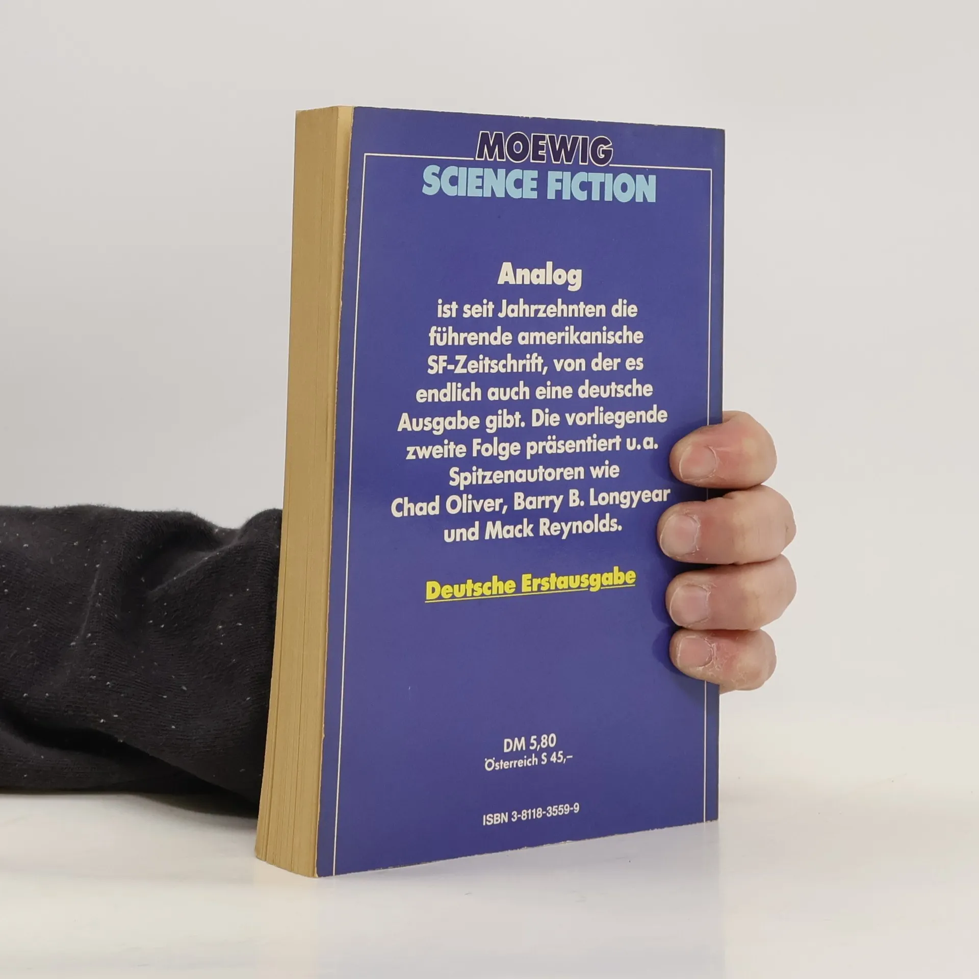 Enthält eine Auswahl von Analog-Stories aus den Jahren 1980 und 1981.Chad Oliver - Unten im Reservat (Meanwhile, back in the reservation Übs.: Joachim Körber)Robert Kincaid - Wir arbeiten daran (We're working on it, Übs.: Michael Windgassen)Mack Reynolds - Was kaufen die Weinhändler ein? (What the vintners buy, Übs.: Irene Lansky)Charles L. Harness - H-TEK (H-TEK, Übs.: Joachim Körber)Barry B. Longyear - Sammlerstück (Collectors' item, Übs.: Joachim Körber)