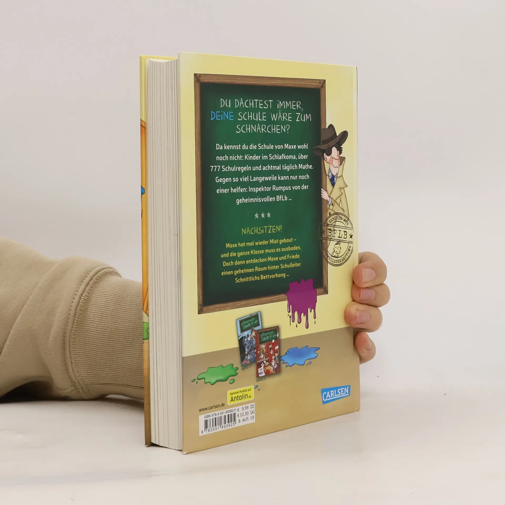 *** „Bitte leise atmen!“ heißt es für Maxe, Frieda und ihre Klasse in der langweiligsten Schule der Welt. Ein Fall für Inspektor Rasputin Rumpus von der Behörde für Langeweilebekämpfung! *** Über 777 Schulregeln und achtmal täglich Mathe: Maxes Schule ist zum Einschlafen! Doch dann taucht ein geheimnisvoller Inspektor auf. Auch in Band 2 hat Maxe mal wieder Mist gebaut. Die ganze Klasse muss es ausbaden. Doch dann erhält Maxe einen geheimnisvollen Auftrag. Zusammen mit Frieda findet er einen geheimen Raum hinter Schulleiter Schnittlichs Bettvorhang ... Eine neue, turbulente Reihe für Jungs und Mädchen - Schulchaos plus Agenten-Spannung plus viele Bilder = Lesespaß pur! Lesen lernen leichtgemacht! Kurze Kapitel, viele Bilder! „Witzige Mischung aus Klassenchaos und Agentenspannung“, Spick 415, Juli/August 2017