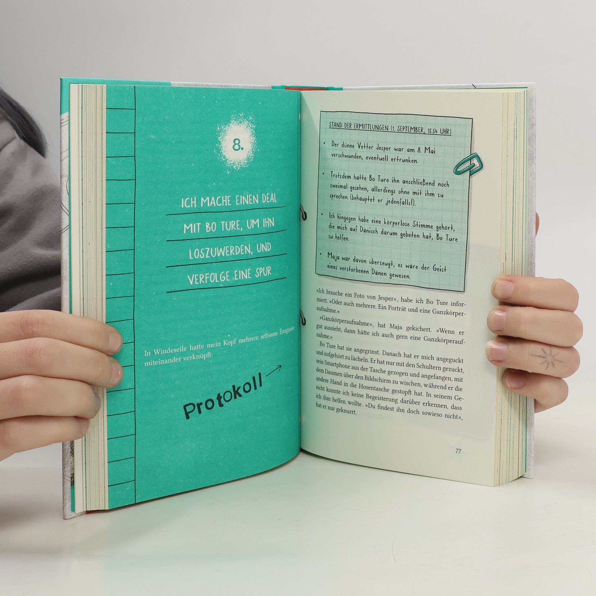 Der Tag, an dem Bo in Florentines Klasse kommt, ist dunkelrot. Auf einer Farbskala von Lindgrün bis Glutrot ein echter Feuerlöscher-Tag. Am selben Tag verschwindenauch Florentines ausrangierte Kuscheltiere. Und auch wenn das eine erstmal nichts mit dem anderen zu tun hat, ist dieser 31. August doch der Anfang eines ganz und gar außergewöhnlichen Kriminalfalls. Denn Bo ist nicht nur ausgesprochen nervig, er hat auch einen verschwundenen Cousin namens Jesper. Als der nachts in Florentines Zimmer auftaucht und sie bittet Bo zu helfen, ist ihr Ermittlerinstinkt geweckt. Blöd nur, dass Jesper nur Dänisch spricht und ständig wieder verschwindet. Mehr denn je ist Florentine auf die Hilfe ihrer besten Freundin Maja angewiesen. Denn die kennt sich viel besser mit Menschen aus als Florentine - mit denen die da sind und auch mit den Verschwundenen ..