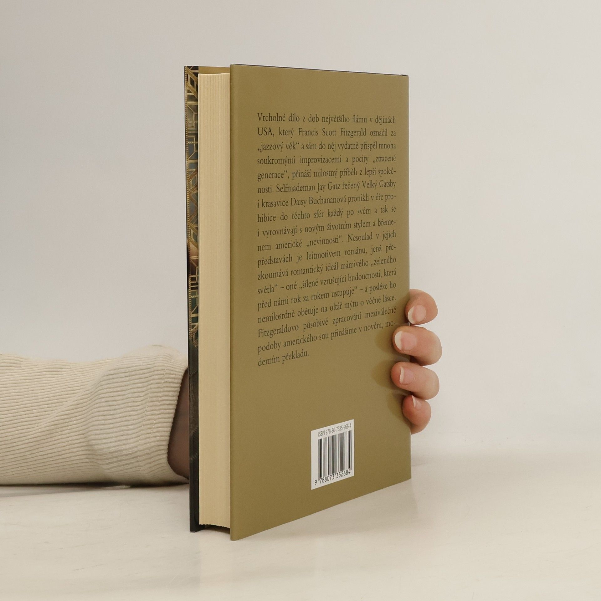 Vrcholné dílo z dob největšího flámu v dějinách USA, který Francis Scott Fitzgerald označil za „jazzový věk“ a sám do něj vydatně přispěl mnoha soukromými improvizacemi a pocity „ztracené generace“, přináší milostný příběh z lepší společnosti. Selfmademan Jay Gatz řečený Velký Gatsby i krasavice Daisy Buchananová pronikli v éře prohibice do těchto sfér každý po svém a tak se vyrovnávají i s novým životním stylem a břemenem americké „nevinnosti“. Nesoulad v jejich představách je leitmotivem románu, jenž přezkoumává romantický ideál mámivého „zeleného světla“ – oné „šílené, vzrušující budoucnosti, která před námi rok za rokem ustupuje“ – a posléze ho nemilosrdně obětuje na oltář mýtu o věčné lásce. Fitzgeraldovo působivé zpracování meziválečné podoby amerického snu přinášíme v novém, moderním překladu.