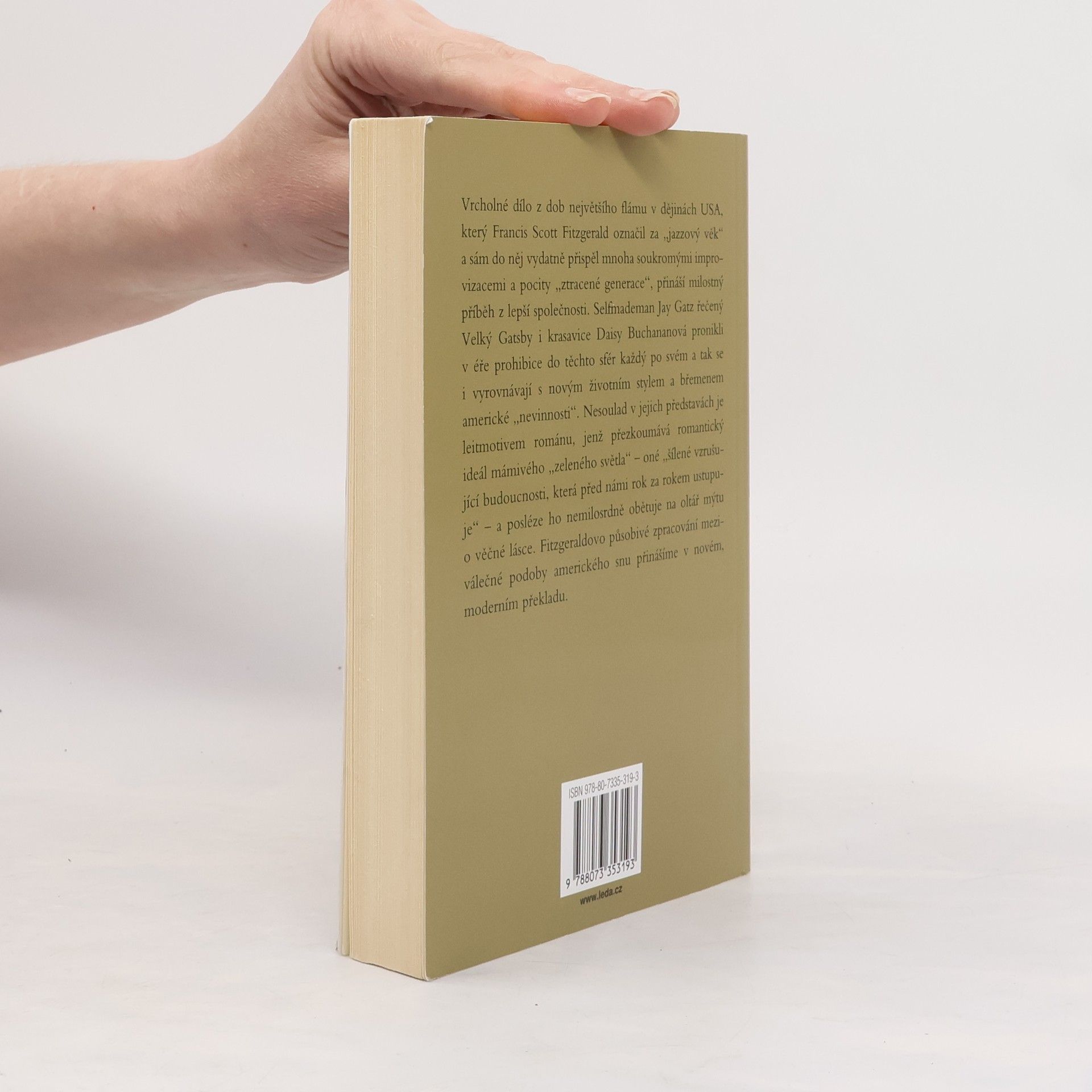Vrcholné dílo z dob největšího flámu v dějinách USA, který Francis Scott Fitzgerald označil za „jazzový věk“ a sám do něj vydatně přispěl mnoha soukromými improvizacemi a pocity „ztracené generace“, přináší milostný příběh z lepší společnosti. Selfmademan Jay Gatz řečený Velký Gatsby i krasavice Daisy Buchananová pronikli v éře prohibice do těchto sfér každý po svém a tak se vyrovnávají i s novým životním stylem a břemenem americké „nevinnosti“. Nesoulad v jejich představách je leitmotivem románu, jenž přezkoumává romantický ideál mámivého „zeleného světla“ – oné „šílené, vzrušující budoucnosti, která před námi rok za rokem ustupuje“ – a posléze ho nemilosrdně obětuje na oltář mýtu o věčné lásce. Fitzgeraldovo působivé zpracování meziválečné podoby amerického snu přinášíme v novém, moderním překladu.