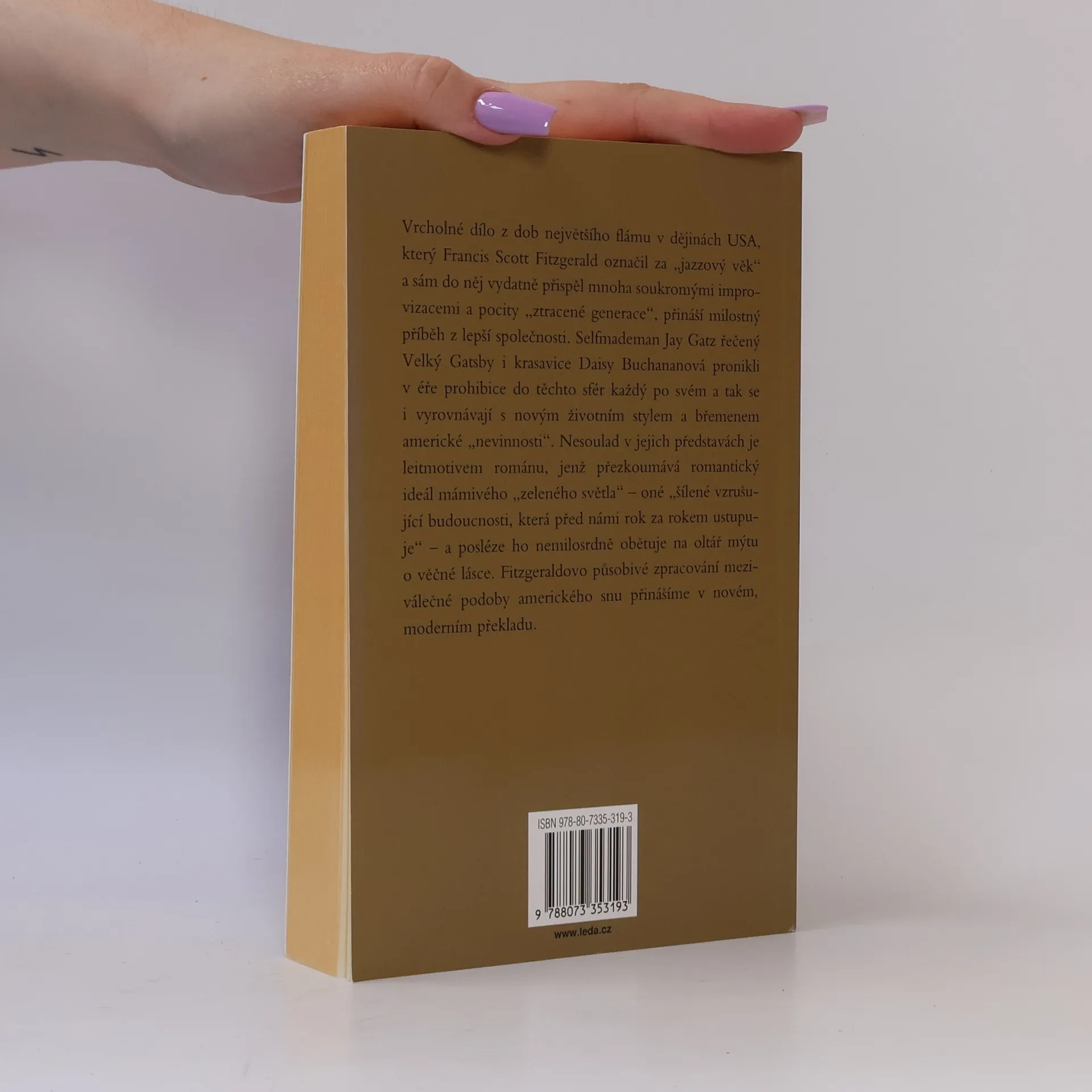 Vrcholné dílo z dob největšího flámu v dějinách USA, který Francis Scott Fitzgerald označil za „jazzový věk“ a sám do něj vydatně přispěl mnoha soukromými improvizacemi a pocity „ztracené generace“, přináší milostný příběh z lepší společnosti. Selfmademan Jay Gatz řečený Velký Gatsby i krasavice Daisy Buchananová pronikli v éře prohibice do těchto sfér každý po svém a tak se vyrovnávají i s novým životním stylem a břemenem americké „nevinnosti“. Nesoulad v jejich představách je leitmotivem románu, jenž přezkoumává romantický ideál mámivého „zeleného světla“ – oné „šílené, vzrušující budoucnosti, která před námi rok za rokem ustupuje“ – a posléze ho nemilosrdně obětuje na oltář mýtu o věčné lásce. Fitzgeraldovo působivé zpracování meziválečné podoby amerického snu přinášíme v novém, moderním překladu.