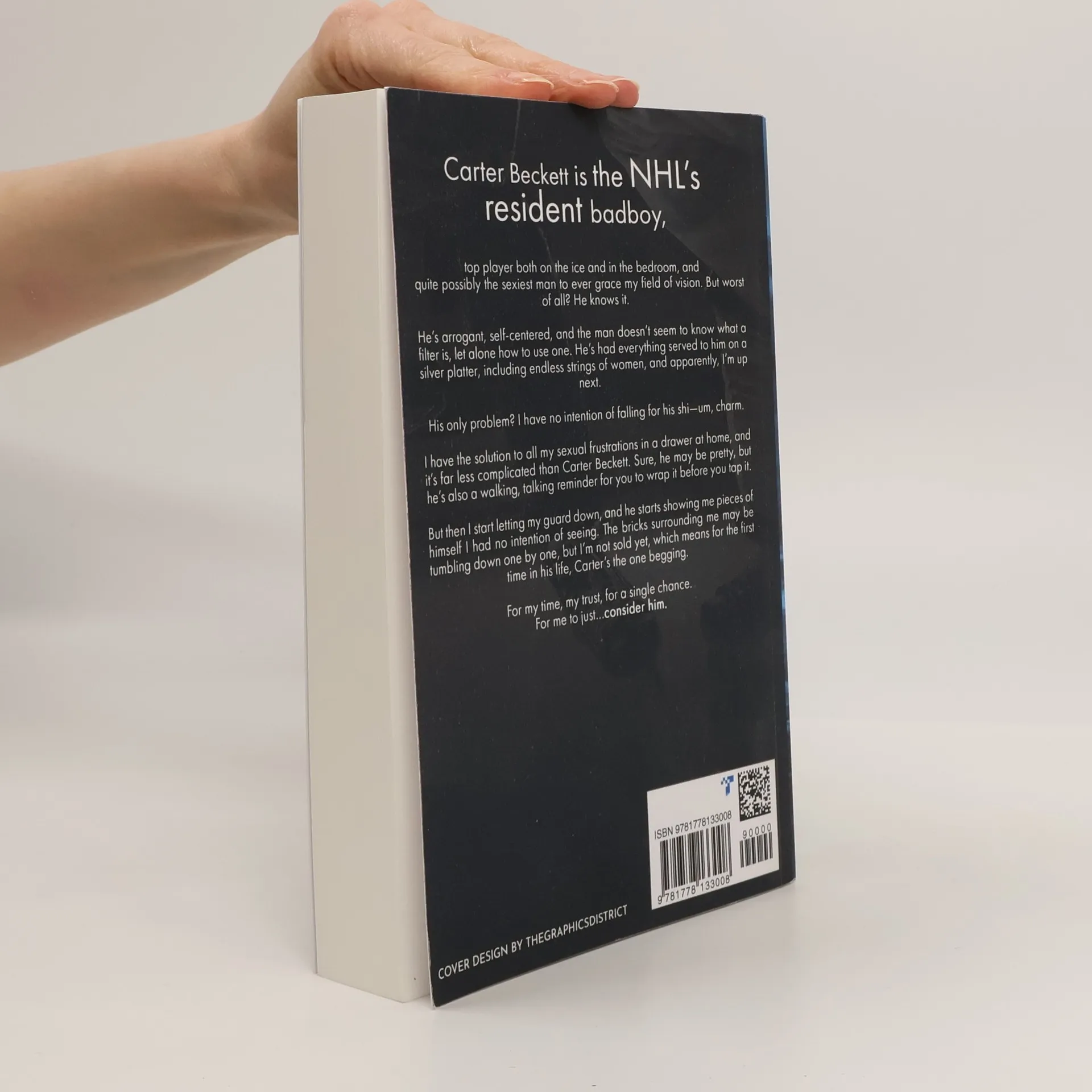 "Carter Beckett is the NHL's resident bad boy, top player both on the ice and in the bedroom, and quite possibly the sexiest man to ever grace my field of vision. But worst of all? He knows it. He's arrogant, self-centered, and the man doesn't seem to know what a filter is, let alone how to use one. He's had everything served to him on a silver platter, including endless strings of women, and apparently, I'm up next. His only problem? I have no intention of falling for his shi----um, charm. I have the solution to all my sexual frustrations in a drawer at home, and it's far less complicated than Carter Beckett. Sure, he may be pretty, but he's also a walking, talking reminder for you to wrap it before you tap it. But then I start letting my guard down, and he starts showing me pieces of himself I had no intention of seeing. The bricks surrounding me may be tumbling down one by one, but I’m not sold yet, which means for the first time in his life, Carter's the one begging. For my time, my trust, for a single chance. For me to just...consider him."--