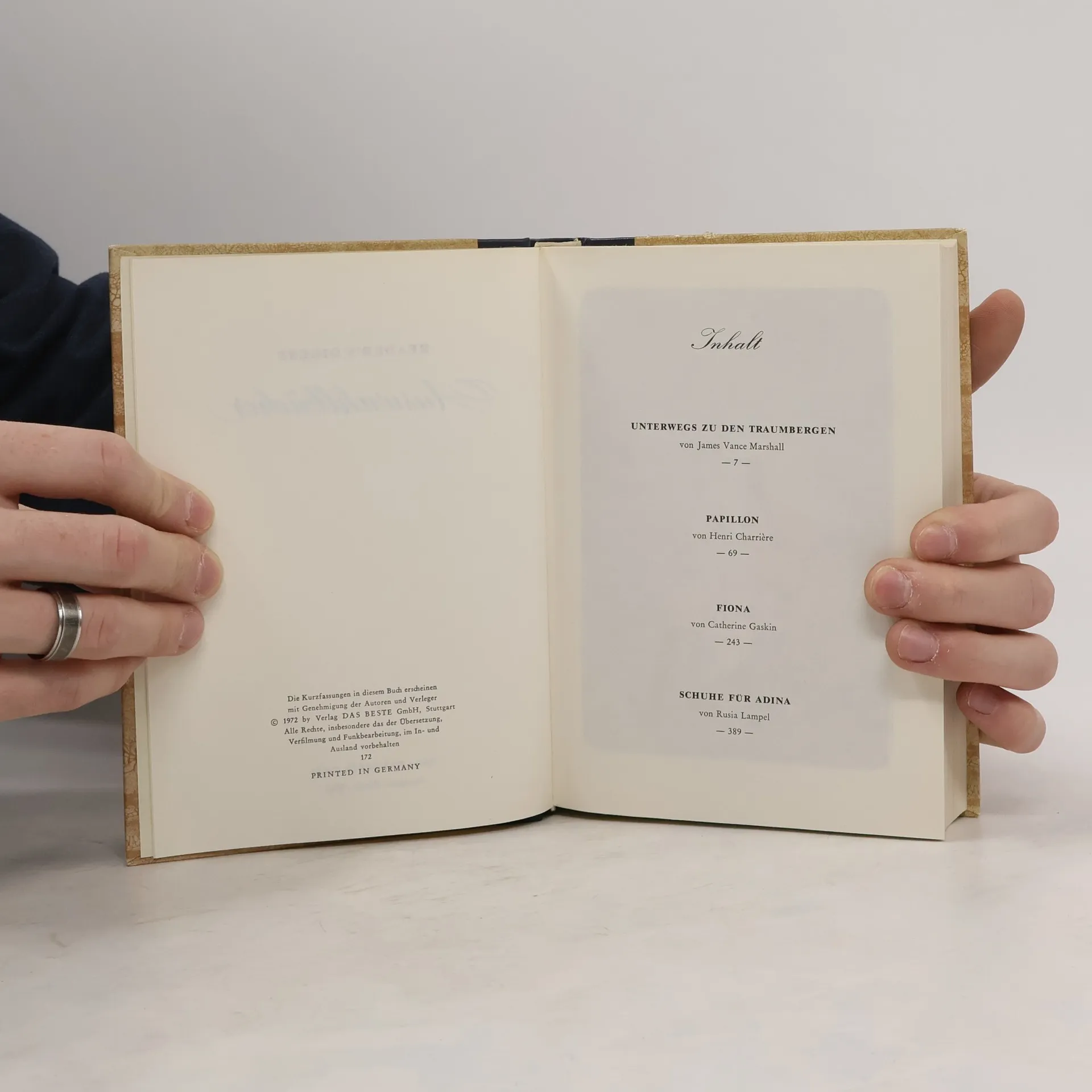 Skladem máme celkem knihy Reader's Digest Auswahlbücher. Unterwegs zu den Traumbergen. Papillon. Fiona. Schuhe für Adina (1972).