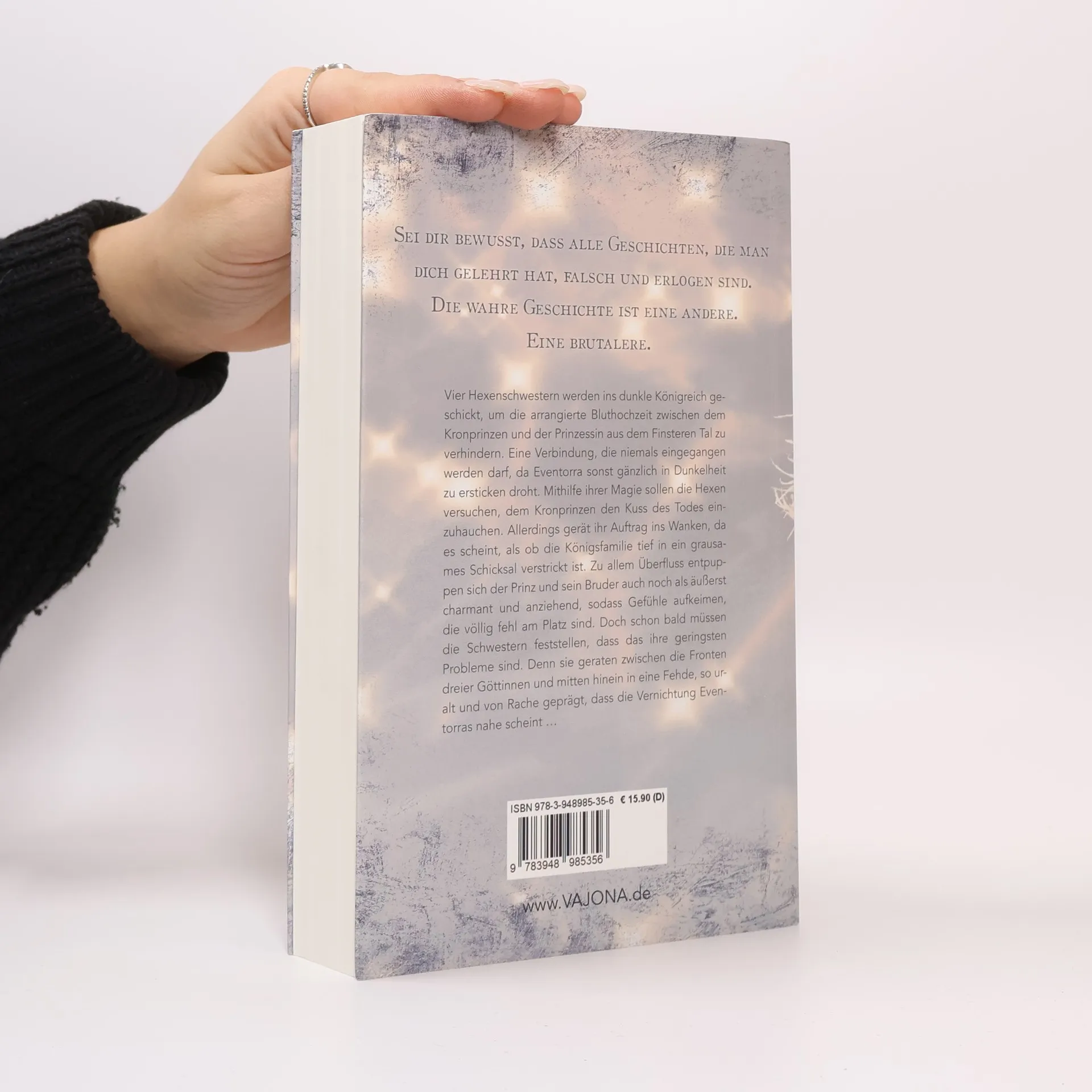 *Sei dir bewusst, dass alle Geschichten, die man dich gelehrt hat, falsch und erlogen sind. Die wahre Geschichte ist eine andere. Eine Brutalere. * Vier Hexenschwestern werden ins dunkle Königreich geschickt, um die arrangierte Bluthochzeit zwischen dem Kronprinzen und der Prinzessin aus dem Finsteren Tal zu verhindern. Eine Verbindung, die niemals eingegangen werden darf, da Eventorra sonst gänzlich in Dunkelheit zu ersticken droht. Mithilfe ihrer Magie sollen die Hexen versuchen, dem Kronprinzen den Kuss des Todes einzuhauchen. Allerdings gerät ihr Auftrag ins Wanken, da es scheint, als ob die Königsfamilie tief in ein grausames Schicksal verstrickt ist. Zu allem Überfluss entpuppen sich der Prinz und sein Bruder auch noch als äußerst charmant und anziehend, sodass Gefühle aufkeimen, die völlig fehl am Platz sind. Doch schon bald müssen die Schwestern feststellen, dass das ihre geringsten Probleme sind. Denn sie geraten zwischen die Fronten dreier Göttinnen und mitten hinein in eine Fehde, so uralt und von Rache geprägt, dass die Vernichtung Eventorras nahe scheint …