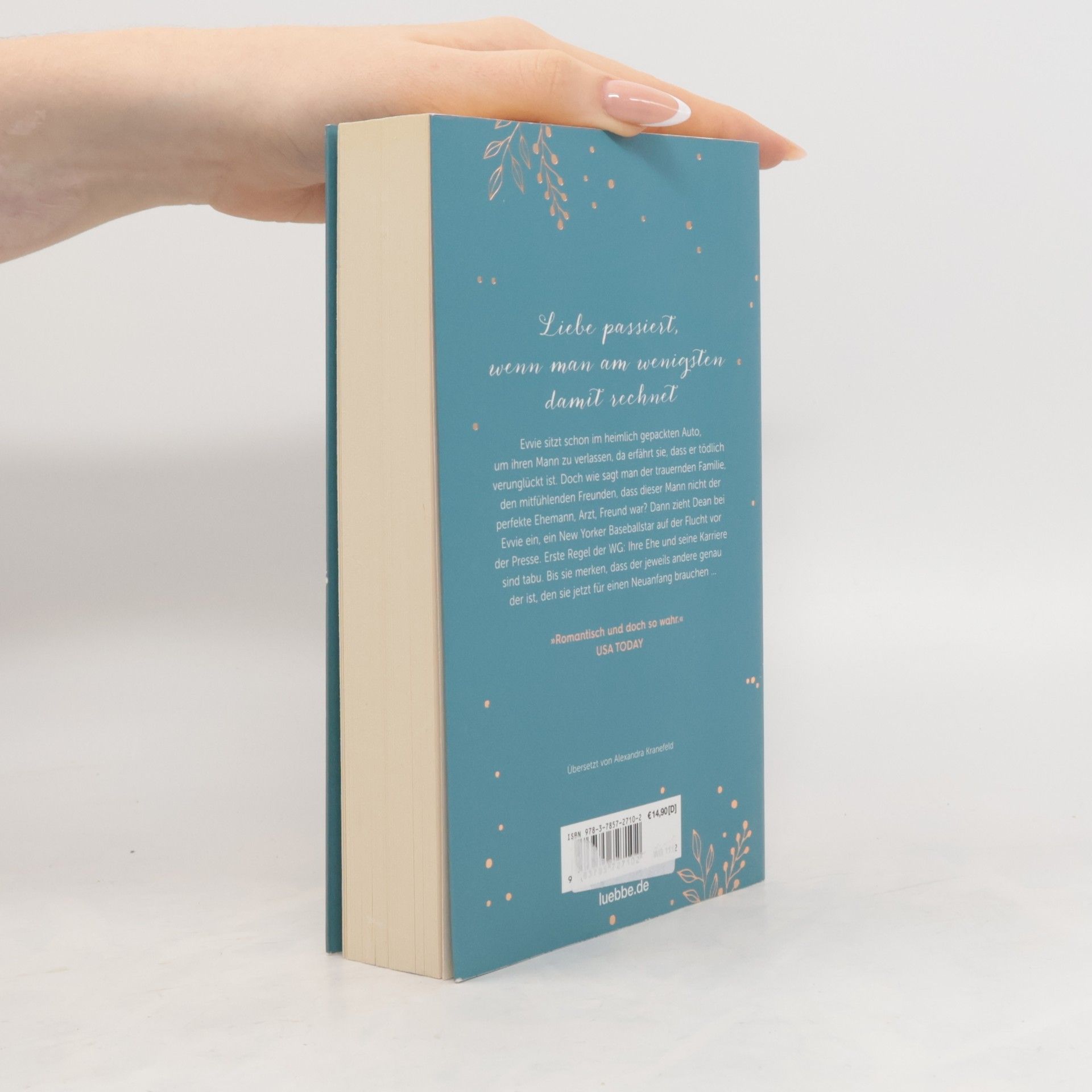 Evvie sitzt schon im heimlich gepackten Auto, um ihren Mann zu verlassen, da erfährt sie, dass er tödlich verunglückt ist. Doch wie sagt man der trauernden Familie, den mitfühlenden Freunden, dass dieser Mann nicht der perfekte Ehemann, Arzt, Freund war? Dann zieht Dean, ein New Yorker Baseballstar auf der Flucht vor der Presse, bei Evvie ein. Erste Regel der WG: Ihre Ehe und seine Karriere sind tabu. Bis sie merken, dass der jeweils andere genau der ist, den sie jetzt für einen Neuanfang brauchen ...