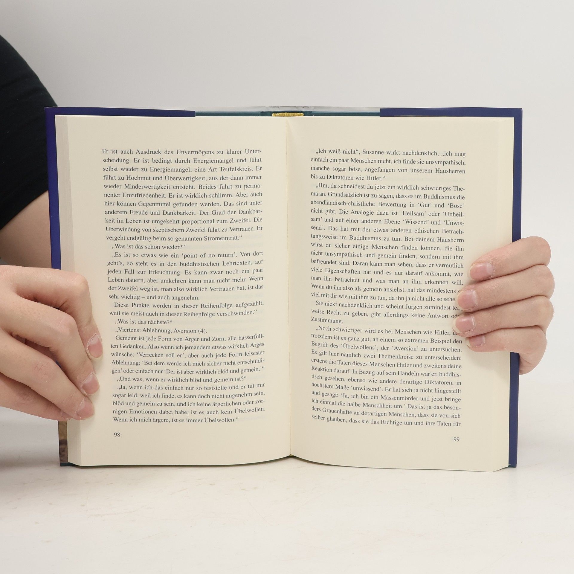 Der Buddhismus steht heute hoch im Kurs, und immer mehr Menschen interessieren sich für ihn. Dennoch bestehen viele falsche Vorurteile: Man müsse „arm sein“, „nichts tun“, an „Wiedergeburt“ und „fremde Götter“ glauben. Dies führt zu falschen Erwartungen an die Lehre. Dieses Buch schafft Klarheit und schlägt eine Brücke vom westlichen Alltag zur buddhistischen Praxis. Als Mittel der Beschreibung der buddhistischen Lehre wird der Dialog zwischen drei Männern und drei Frauen gewählt. Diese sprechen auch über ihre Probleme und Beziehungen. Zur Lebenszeit Buddhas folgten fast ausschließlich zölibatär lebende Mönche und Nonnen seiner Lehre, heute sind es vorwiegend Laien. So werden alle Lebensbereiche und auch die Sexualität in die spirituelle Übung einbezogen.