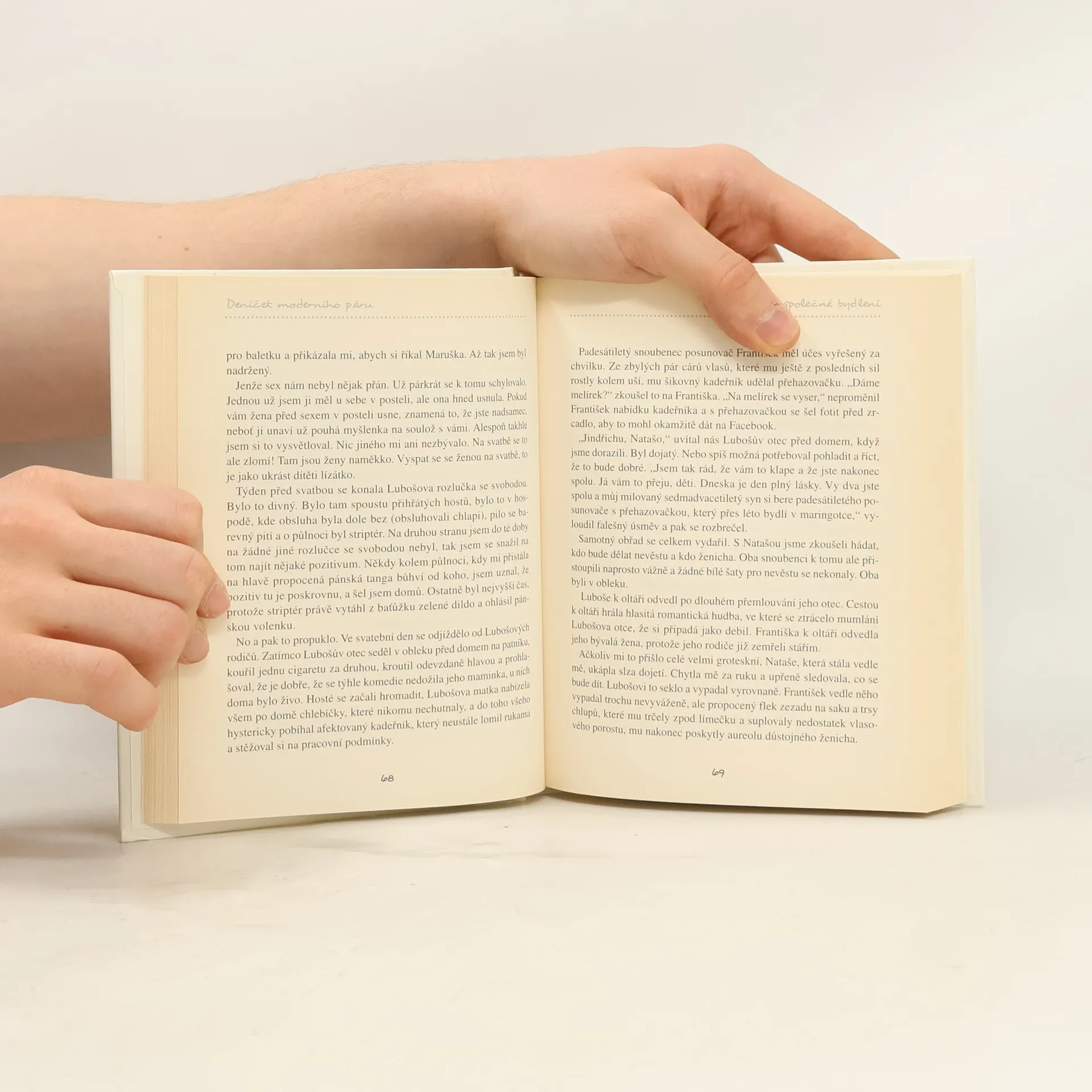 Kdo by neznal eskapády „moderního fotra“, které Dominik Landsman zachytil ve svých úspěšných Deníčcích? Nová kniha, kterou napsal společně s blogerkou a spisovatelkou Zuzanou Hubeňákovou, se pouští na stejnou půdu, ale zpátky do doby, kdy ještě nebyl otcem. Jindřich a Nataša s ironií a černým humorem sobě vlastním popisují své seznámení, sestěhování a nakonec i početí dítěte a mezitím neodolatelně glosují rozdíly mezi muži a ženami, vztahové stereotypy, různé fáze zamilovanosti nebo nástrahy společného bydlení. Deníček moderního páru zachovává styl předchozích dílů, ale díky spoluautorství je bohatší o dva rozdílné, ale srovnatelně humorné styly. Pojďte zjistit, co se dělo předtím, než na svět přišel Čeněk!