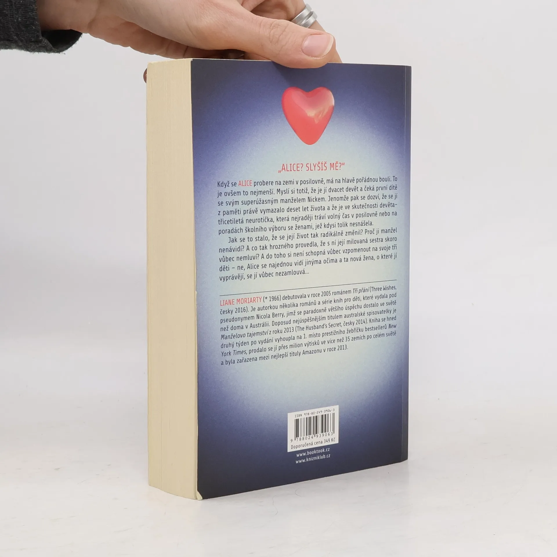 2. vydání. Když se Alice probere na zemi v posilovně, má na hlavě pořádnou bouli a myslí si, že je jí dvacet devět a čeká první dítě se svým superúžasným manželem Nickem. Jenomže pak se dozví, že se jí z paměti právě vymazalo deset let života a že je ve skutečnosti devětatřicetiletá neurotička, která nejraději tráví svůj volný čas v posilovně nebo na poradách školního výboru se ženami, jež kdysi nesnášela. Jak se to stalo, že se její život tak radikálně změnil? Proč ji její manžel nenávidí? Co tak hrozného provedla, že s ní její milovaná sestra skoro nemluví? A do toho si není schopná vůbec vzpomenout na svoje tři děti – ne, Alice se najednou vidí jinýma očima a ta nová žena, o které jí vyprávějí, se jí vůbec nezamlouvá. Najde způsob, aby se znovu stala tím člověkem, kterým bývala?
