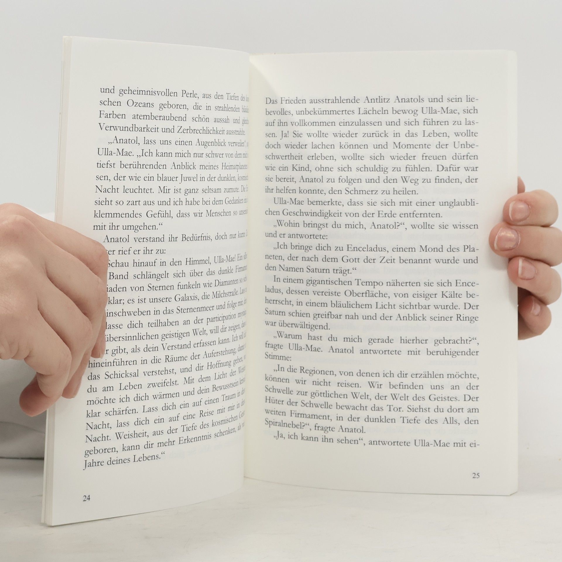 Die Autorin entführt ihre Heldin hinaus in die Weiten des Universums. Die Reise beginnt ganz irdisch. Auf den Inseln der Götter, mitten im Nordmeer, hofft Ulla-Mae auf Heilung ihres Schmerzes um den Verlust eines geliebten Menschen. In einer kleinen Fischerhütte, am Fuße gigantischer Felsmassive, hat sie einen mystischen Traum. Ein Geistwesen namens Anatol führt sie auf eine fantastische Reise durch das All. Während ihr Körper schlafend zurückbleibt, schwebt ihre Seele hinauf in die kosmische Nacht. Anatol hatte gesagt, sie werde Dinge erblicken, die kein menschliches Auge je gesehen hat und sie werde mit ihm an Orte reisen, wo ihr Körper keine Sekunde überleben könnte. Und sie werde Wesenheiten einer höheren Dimension kennenlernen, die ihr Einblick in die Schöpfung und das Schicksal geben werden. Wer sich diesen Botschaften zu öffnen vermag, versteht das Schicksal, findet Heilung. Und vielleicht ist diese fantastisch-mystische Traumreise auch für manchen Leser der erste Schritt auf dem Weg zur eigenen höheren Wahrheit.