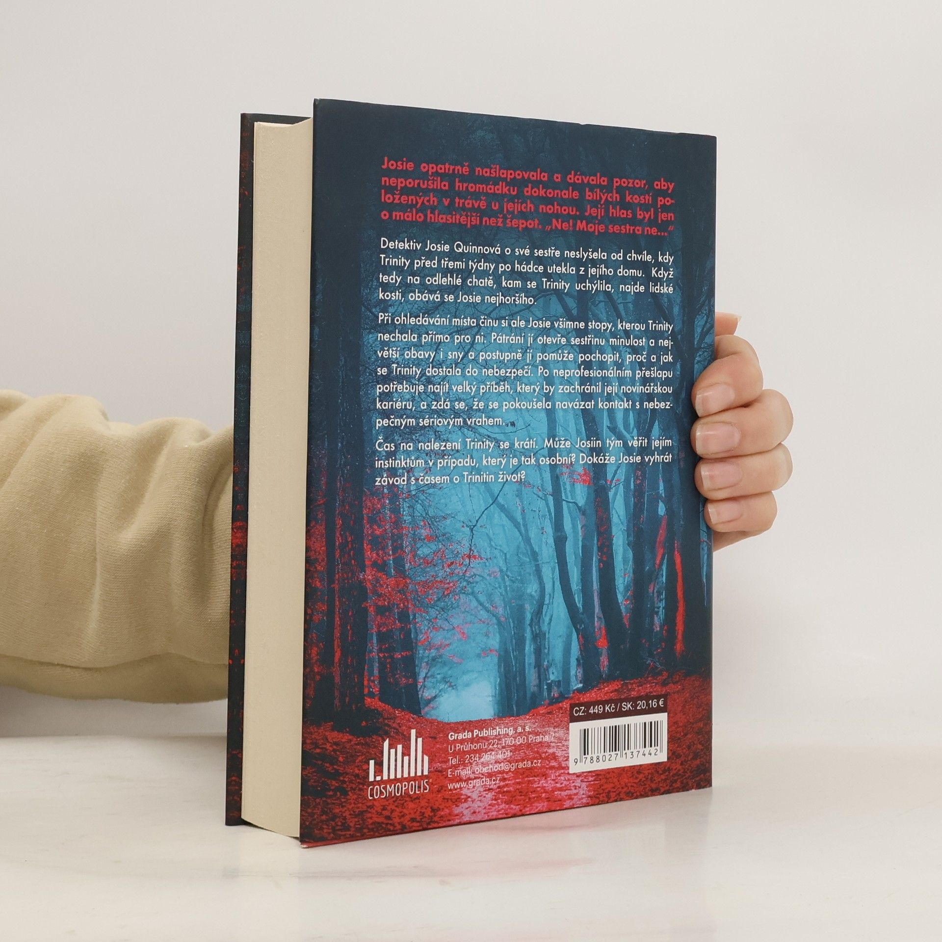 Detektiv Josie Quinnová o své sestře neslyšela od chvíle, kdy Trinity před třemi týdny po hádce utekla z jejího domu. Když tedy na odlehlé chatě, kam se Trinity uchýlila, najde lidské kosti, obává se Josie nejhoršího. Při ohledávání místa činu si ale Josie všimne stopy, kterou Trinity nechala přímo pro ni. Pátrání jí otevře sestřinu minulost a největší obavy i sny a postupně jí pomůže pochopit, proč a jak se Trinity dostala do nebezpečí. Po neprofesionálním přešlapu potřebuje najít velký příběh, který by zachránil její novinářskou kariéru, a zdá se, že se pokoušela navázat kontakt s nebezpečným sériovým vrahem. Čas na nalezení Trinity se krátí. Může Josiin tým věřit jejím instinktům v případu, který je tak osobní? Dokáže Josie vyhrát závod s časem o Trinitin život?