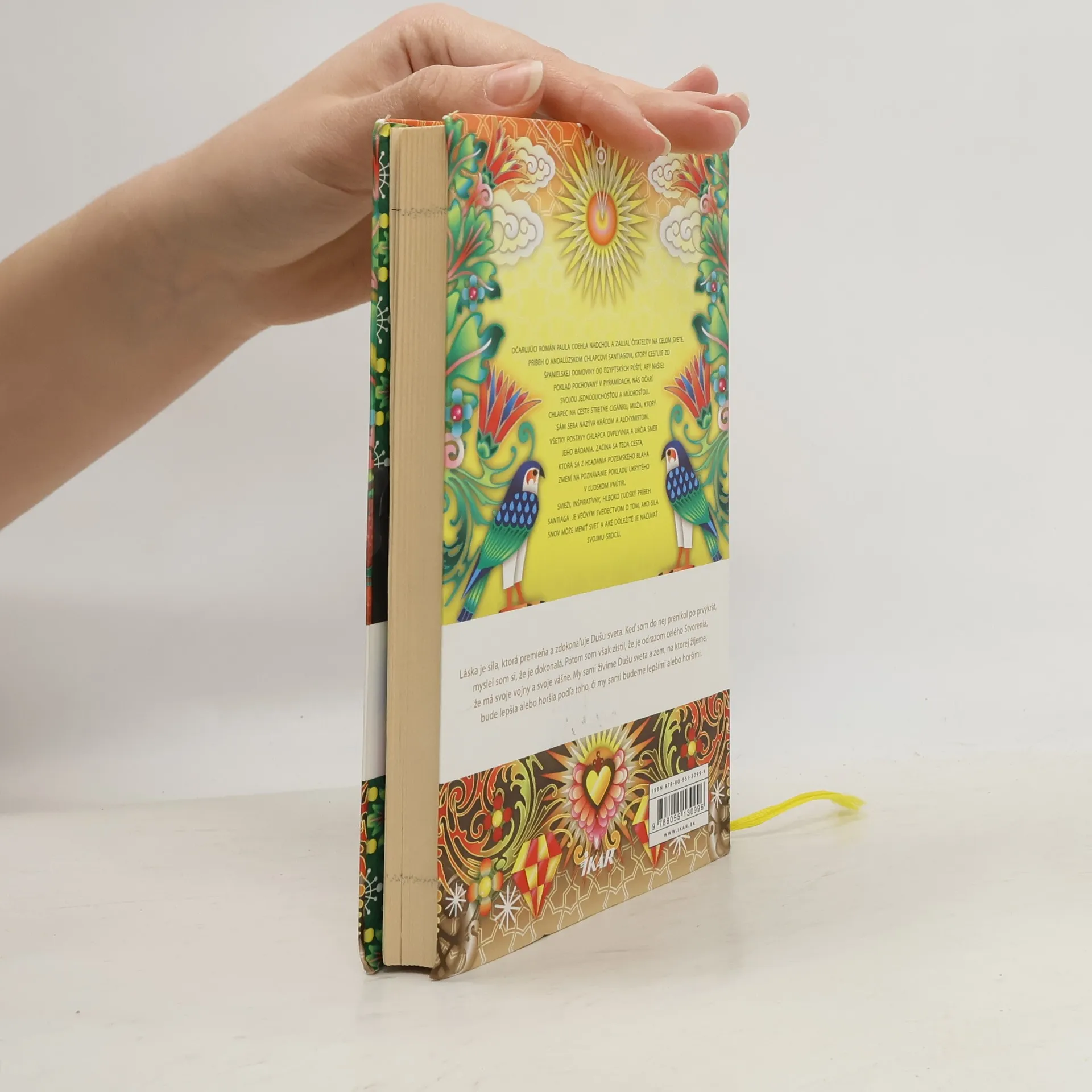 Príbeh o pastierovi Santiagovi, ktorý cestuje zo španielskej domoviny do egyptských púští, aby našiel poklad pochovaný v pyramídach, očarí svojou jednoduchosťou a múdrosťou. Svieži, inšpiratívny, hlboko ľudský príbeh Santiaga je večným svedectvom o tom, ako sila snov môže meniť svet a aké dôležité je načúvať svojmu srdcu. Lebo nezabúdajte: Tvoje srdce je tam, kde je tvoj poklad.