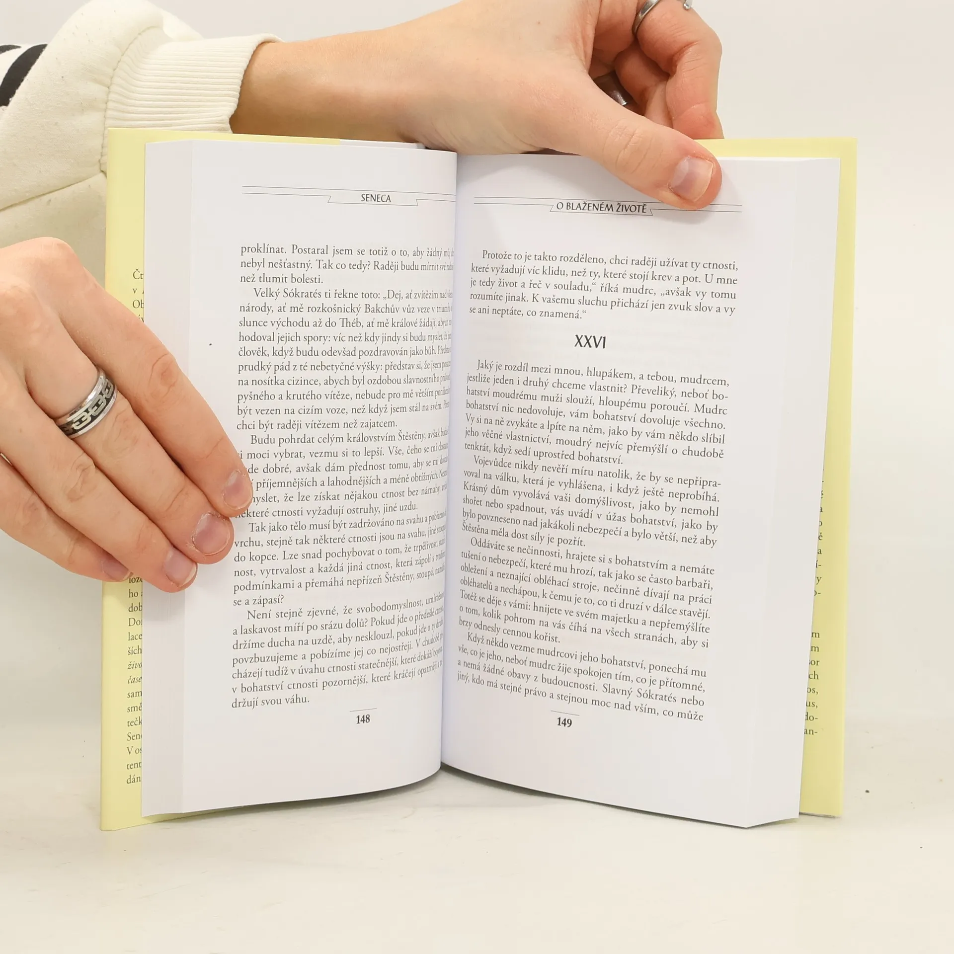 Čtvrtý svazek Senecových filozofických textů dovršuje edici jeho prozaického díla v českých překladech vydaných v Antické knihovně (AK 4; AK 51;). Dominantou tohoto závěrečného svazku je proslulá konsolace čili útěcha O duševním klidu. Její téma v dílčích pohledech doplňuje sedmero dalších úvah. Kuriózním dodatkem je často samostatně vydávaná satira Apokolokyntóza, zesměšňující zbožštění císaře Claudia. Pikantní tečkou je soubor 73 epigramů, v nichž vyniká Senekův břitký ostrovtip a pozorovací schopnost. Seneca vždy patřil a stále patří k nejznámějším a nejoblíbenějším římským autorům. Jeho filozofické spisy, úvahy a konsolace čili útěchy byly hojně čteny pro naléhavý etický obsah a srozumitelnost. Hledá cesty k mravní odpovědnosti cti, vnitřní svobodě a duševní vyrovnanosti, uvažuje o smrti a o přátelství a jeho prospěšnosti a potřebnosti, chválí odpoutání od materiálních potřeb, prosazuje myšlenku o rovnosti všech lidí apod. Je to filozofie praktického života a lze z ní vyčíst mnoho autorových vlastních zkušeností ze vzrušené doby, kterou prožíval. Obsahuje: Apokolokyntóza Epigramy O blaženém životě O duševním klidu O hněvu O krátkosti života O laskavosti O prozřetelnosti O stálosti mudrce O volném čase