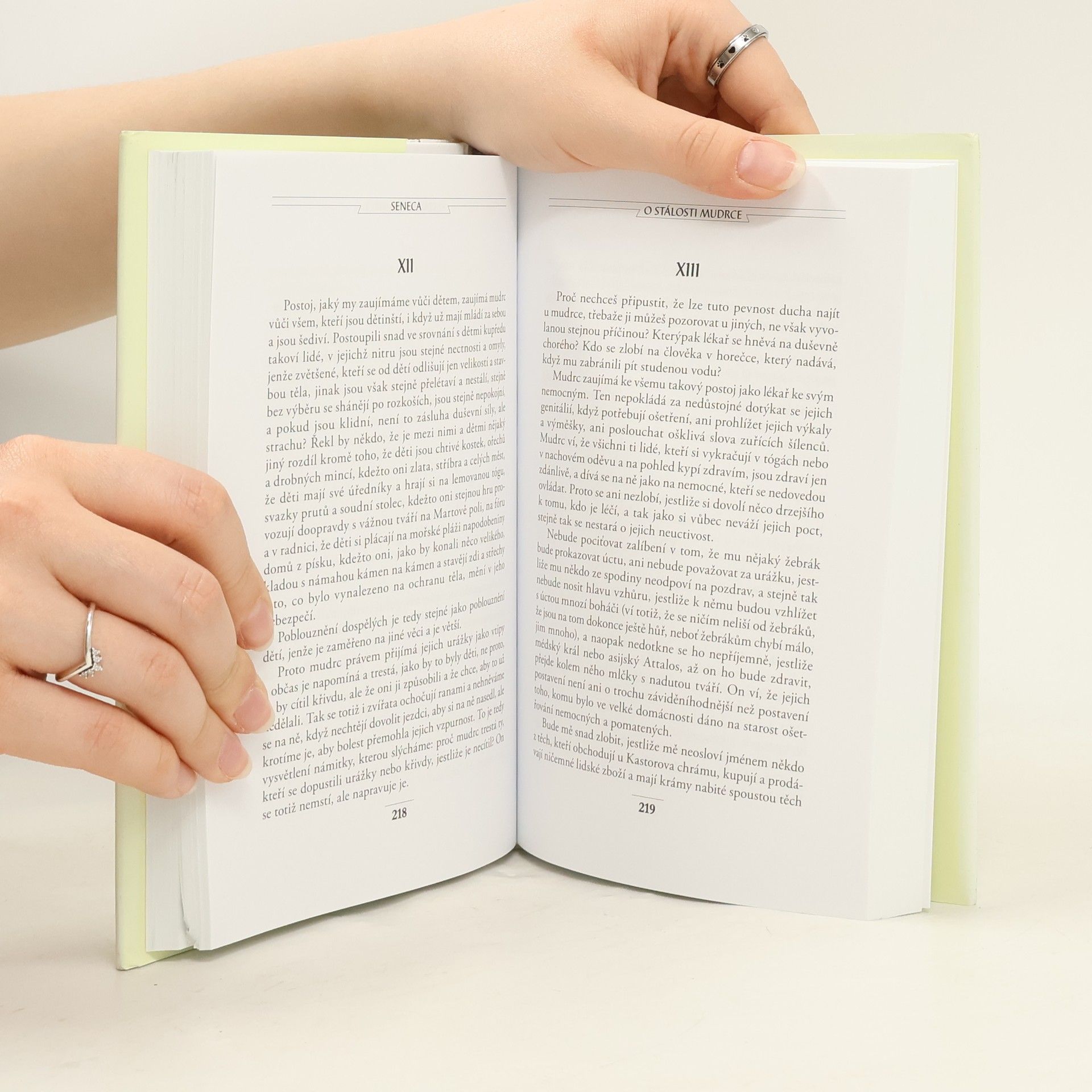 Čtvrtý svazek Senecových filozofických textů dovršuje edici jeho prozaického díla v českých překladech vydaných v Antické knihovně (AK 4; AK 51;). Dominantou tohoto závěrečného svazku je proslulá konsolace čili útěcha O duševním klidu. Její téma v dílčích pohledech doplňuje sedmero dalších úvah. Kuriózním dodatkem je často samostatně vydávaná satira Apokolokyntóza, zesměšňující zbožštění císaře Claudia. Pikantní tečkou je soubor 73 epigramů, v nichž vyniká Senekův břitký ostrovtip a pozorovací schopnost. Seneca vždy patřil a stále patří k nejznámějším a nejoblíbenějším římským autorům. Jeho filozofické spisy, úvahy a konsolace čili útěchy byly hojně čteny pro naléhavý etický obsah a srozumitelnost. Hledá cesty k mravní odpovědnosti cti, vnitřní svobodě a duševní vyrovnanosti, uvažuje o smrti a o přátelství a jeho prospěšnosti a potřebnosti, chválí odpoutání od materiálních potřeb, prosazuje myšlenku o rovnosti všech lidí apod. Je to filozofie praktického života a lze z ní vyčíst mnoho autorových vlastních zkušeností ze vzrušené doby, kterou prožíval. Obsahuje: Apokolokyntóza Epigramy O blaženém životě O duševním klidu O hněvu O krátkosti života O laskavosti O prozřetelnosti O stálosti mudrce O volném čase