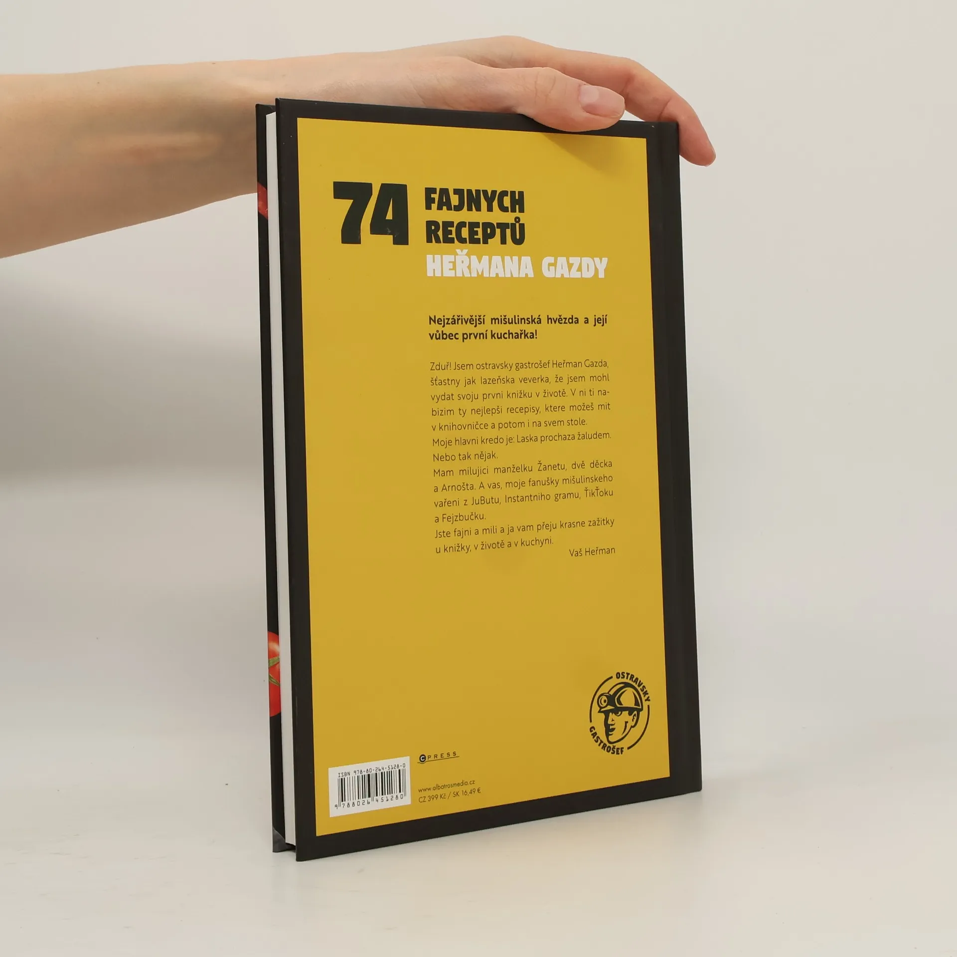 Nejzářivější mišulinská hvězda a její vůbec první kuchařka! Zduř! Jsem ostravsky gastrošef Heřman Gazda, šťastny jak lazeňska veverka, že jsem mohl vydat svoju prvni knižku v životě. V ni ti nabizim ty nejlepši recepisy, ktere možeš mit v knihovničce a potom na svem stole. Moje hlavni kredo je: Laska prochaza žaludem. Nebo tak nějak. Mam milujici manželku Žanetu, dvě děcka a Arnošta. A vas, moje fanušky mišulinskeho vařeni z JuButu, Instantniho gramu, ŤikŤoku a Fejzbučku. Jste fajni a mili a ja vam přeju krasne zažitky u knižky, v životě a kuchyni.