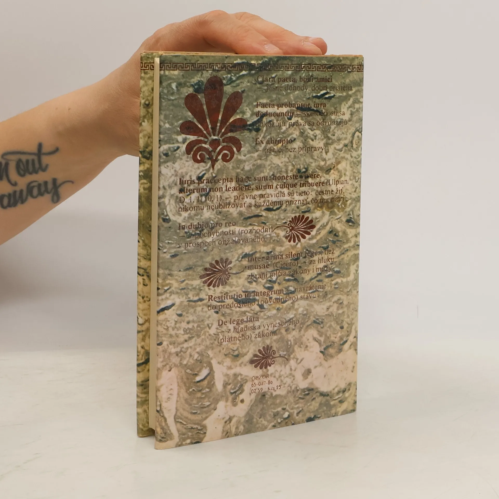 Praktická príručka obsahuje množstvo nielen právnických výrazov, tradovaných právnych regulí, definícií a výrokov, ale aj mnohé aforizmy, príslovia a výroky z neprávnických latinských prameňov. Mnohé z nich sa používajú v preklade aj v súčasnosti, neraz nie presne, resp. nesprávne. Pretomožno očakávať, že publikácia zaujme mladých právnikov, historikov, politikov, podnikateľov, novinárov a iných, ktorí sa stretávajú s poznatkami, myšlienkami a výrazmi pochádzajúcimi z antického obdobia.