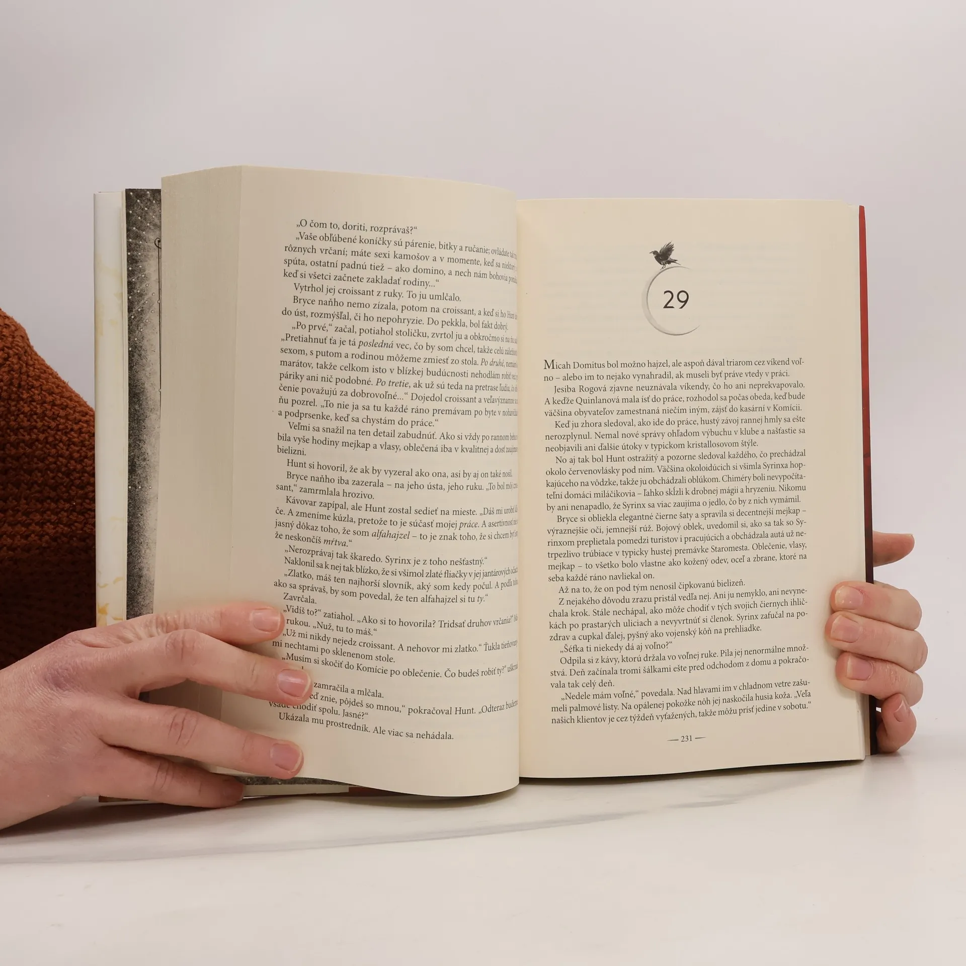 Epická urban fantasy novinka od autorky bestsellerových sérií Trón zo skla a Na dvore z tŕňov a ruží! Bryce Quinlanová mala dokonalý život, až kým jej démon nezavraždil najbližších priateľov. Po takmer dvoch rokoch je obvinený za mrežami, ale vraždy sa začínajú nanovo a Bryce sa ocitne uprostred vyšetrovania, odhodlaná urobiť čokoľvek, aby pomstila smrť priateľov. Hunt Athalar je neslávne známy padlý anjel, zotročený archanjelmi, ktorých sa kedysi pokúsil zvrhnúť. Jeho šéf využíva Huntove neľútostné schopnosti a neuveriteľnú silu na jediný účel - aby bez zbytočných otázok zabíjal jeho nepriateľov. Keď začne v meste démon rozsievať paniku, predostrie mu neodolateľnú ponuku: ak pomôže Bryce nájsť vraha, slobodu bude mať na dosah. Pátranie hlboko v podsvetí mesta Polmesiac ich však zavedie na najtemnejšie miesta a Bryce spolu s Huntom odrazu čelia sile, čo ohrozuje všetko a všetkých, ktorí sú im drahí