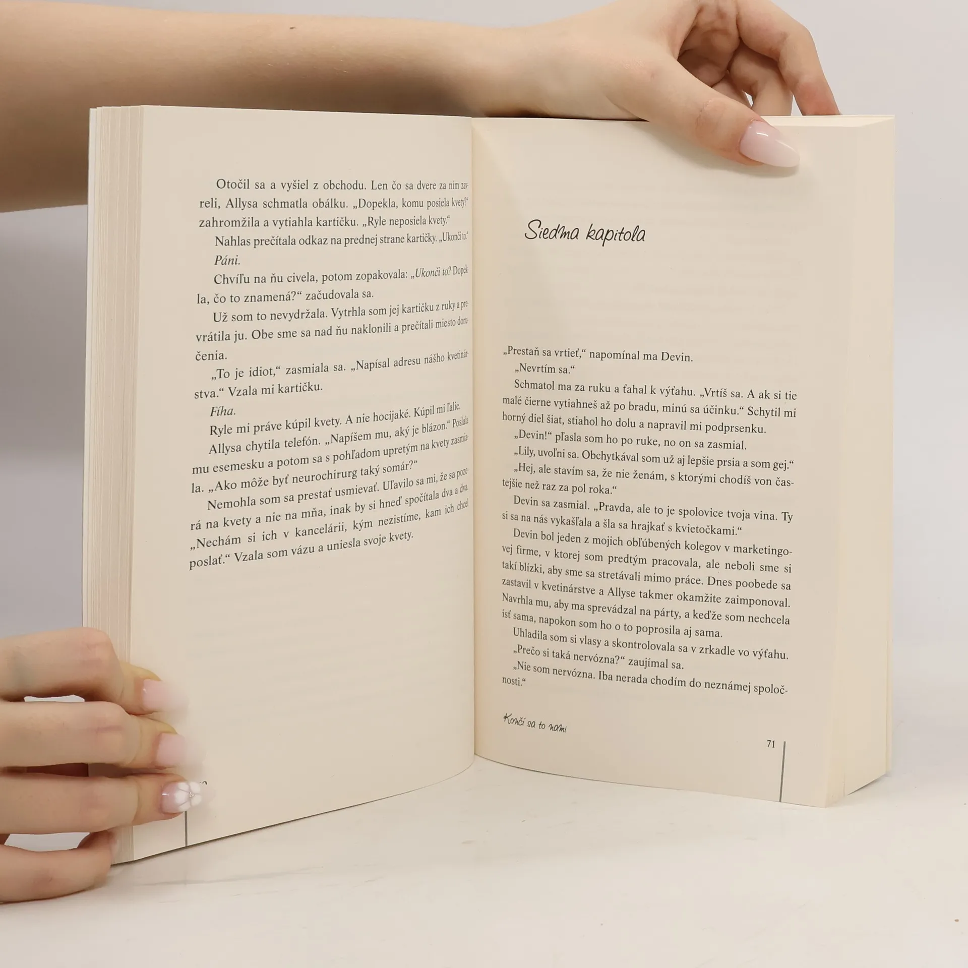 Teraz aj vo filmovom spracovaní s Blake Lively Lily to nikdy nemala ľahké, napriek všetkému tvrdo pracovala na tom, aby si vybudovala život, po akom túži. Presťahovala sa z malého mesta v Maine, kde vyrastala a študovala, do Bostonu a tu si otvorila vlastné kvetinárstvo. Keď medzi ňou a šarmantným neurochirurgom Rylom Kincaidom preskočí iskra, zrazu sa zdá všetko až príliš dobré na to, aby to bola pravda. Ryle je sebavedomý, svojhlavý, možno aj trochu arogantný. Zároveň je citlivý, múdry a má slabosť pre Lily. Jeho averzia k záväzkom ju však dosť znepokojuje. Ako sa Lily krôčik po krôčiku zbližuje s Rylom, vynárajú sa jej spomienky na prvú lásku Atlasa Corrigana aj na trpkú minulosť. Atlas bol jej strážnym anjelom, jej oporou. Keď sa nečakane vráti do jej života, ohrozí všetko, čo si s Rylom namáhavo vybudovali. Colleen Hooverová v tomto odvážnom a hlboko osobnom románe prináša srdcervúci príbeh o láske, ktorá stojí nad všetkým. Z anglického originálu It Ends With Us (Atria Paperback, a Division of Simon & Schuster, Inc., Books, New York 2016) preložila Andrea Vargovčíková.