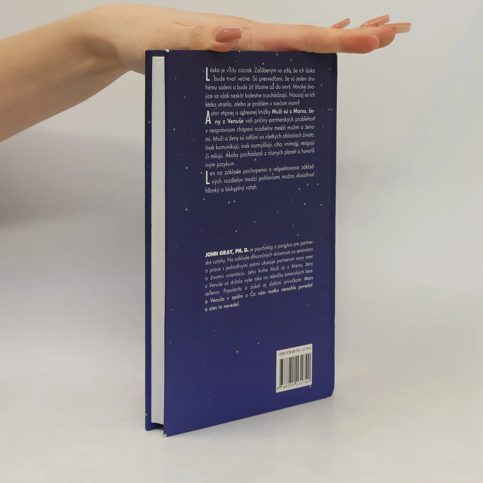 Láska je vždy zázrak. Zaľúbeným sa zdá, že ich láska bude trvať večne. Sú presvedčení, že sú jeden druhému súdení a budú žiť šťastne až do smrti. Mnohé dvojice sa však neskôr bolestne rozchádzajú. Naozaj sa ich láska stratila? Alebo je problém v niečom inom? Autor vtipnej, adresnej knižky Muži sú z Marsu, ženy z Venuše vidí príčiny partnerských problémov v nesprávnom chápaní rozdielov medzi mužmi a ženami. Muži a ženy sú odlišní vo všetkých oblastiach života. Inak komunikujú, inak rozmýšľajú, cítia, vnímajú, reagujú či milujú. Akoby pochádzali z rôznych planét a hovorili iným jazykom. Len na základe pochopenia a rešpektovania základných rozdielov medzi pohlaviami možno dosiahnuť hlboký a láskyplný vzťah. Kniha sa držala vyše štyroch rokov na rebríčku amerických bestsellerov a preložili ju do takmer päťdesiatich jazykov.