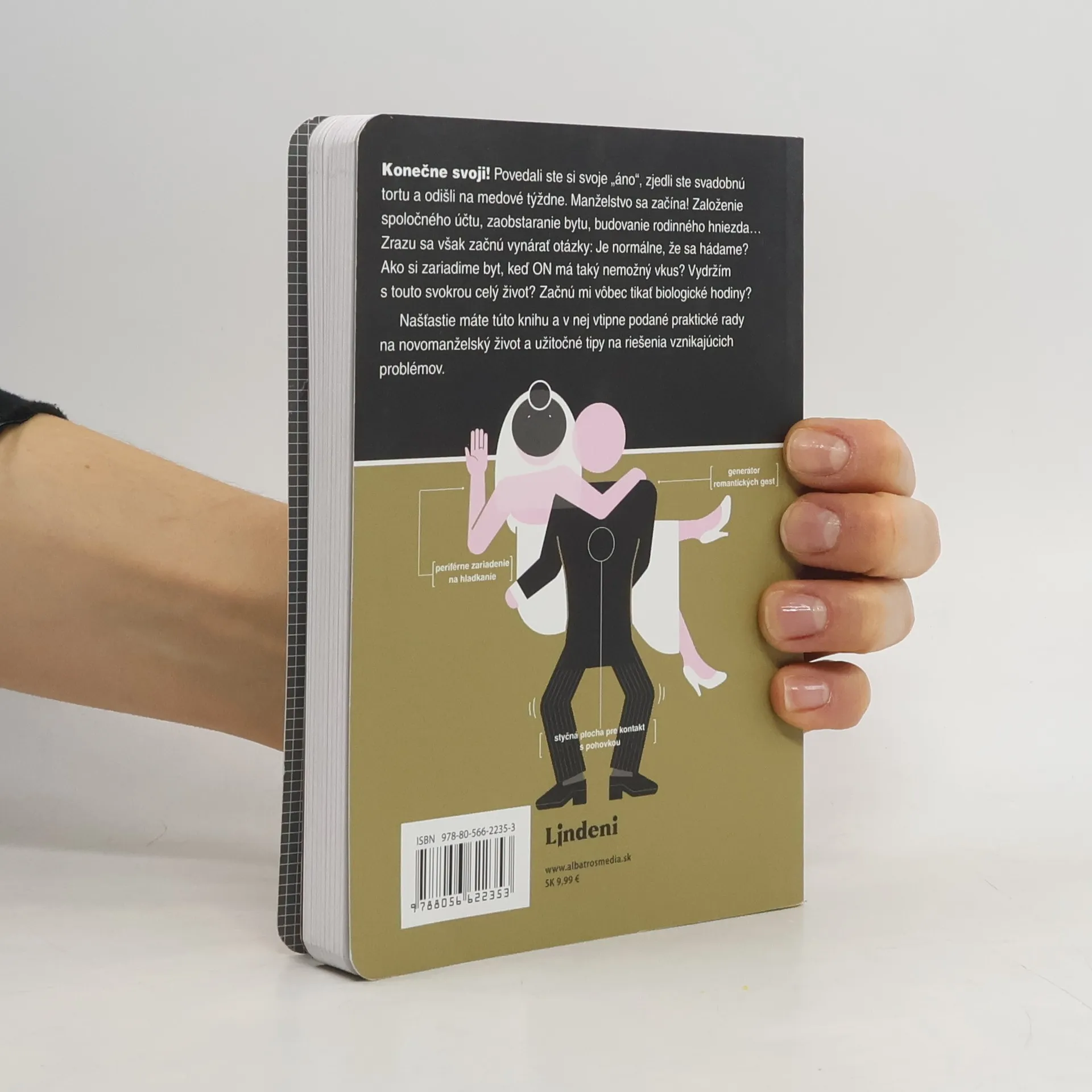Konečne svoji! Povedali ste si svoje „áno“, zjedli ste svadobnú tortu a odišli na medové týždne. Manželstvo sa začína! Založenie spoločného účtu, zaobstaranie bytu, budovanie rodinného hniezda… Zrazu sa však začnú vynárať otázky: Je normálne, že sa hádame? Ako si zariadime byt, keď ON má taký nemožný vkus? Vydržím s touto svokrou celý život? Začnú mi vôbec tikať biologické hodiny? Našťastie máte túto knihu a v nej vtipne podané praktické rady na novomanželský život a užitočné tipy na riešenia vznikajúcich problémov.