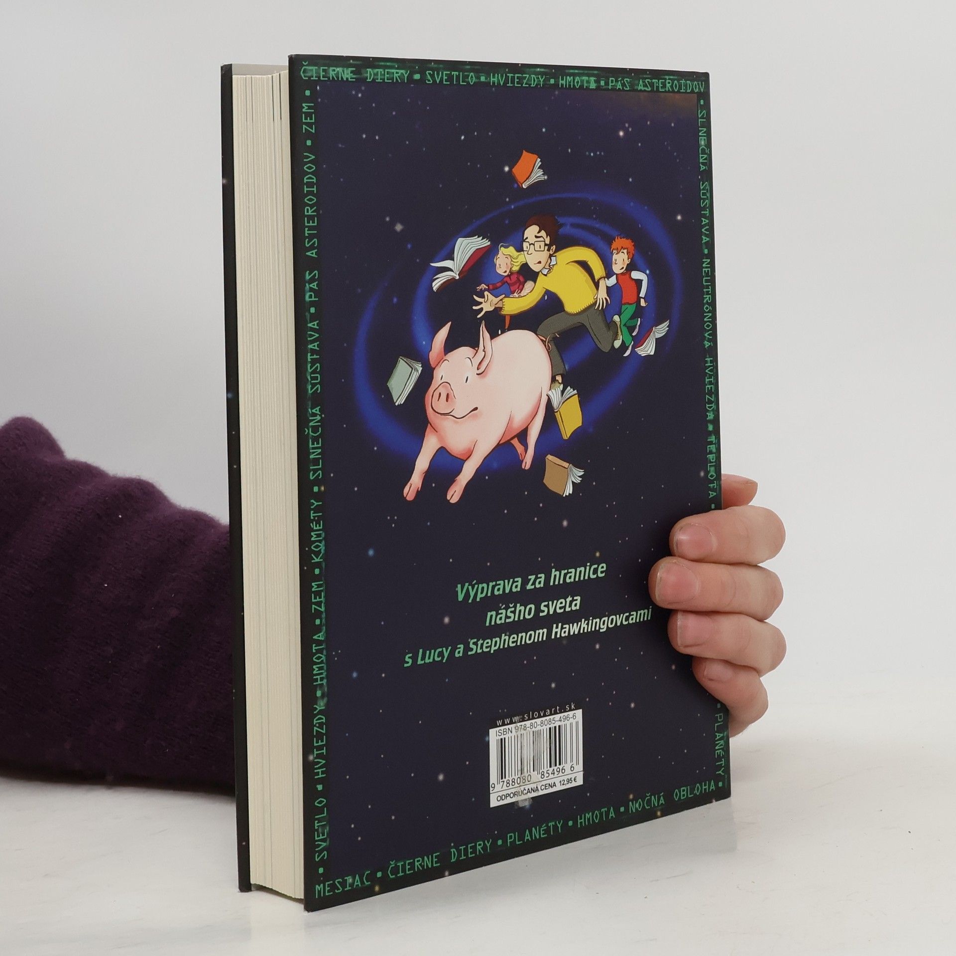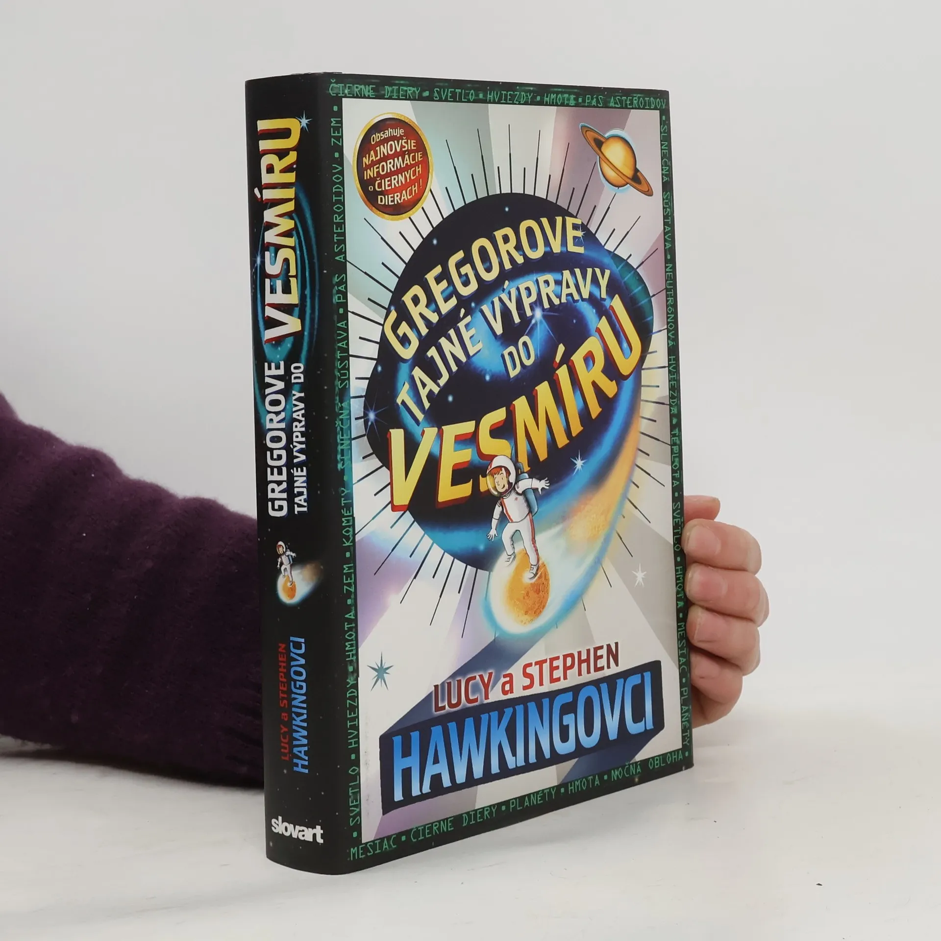 Kniha, ktorú spolu napísali svetoznámy astronóm Stephen Hawking a jeho dcéra Lucy, kombinuje napínavý a zábavný príbeh s množstvom zaujímavých faktov o vesmíre vrátane najnovších poznatkov Stephena Hawkinga o čiernych dierach. Keď Gregor hľadá svoje domáce prasiatko v susednej záhrade, stretne nových susedov Annu a jej otca Erika, ktorý je uznávaný vedec. Otvoria sa mu dvere do celkom nového sveta. Do sveta, kde sa dá na svet pozerať z iného pohľadu – z vesmíru.